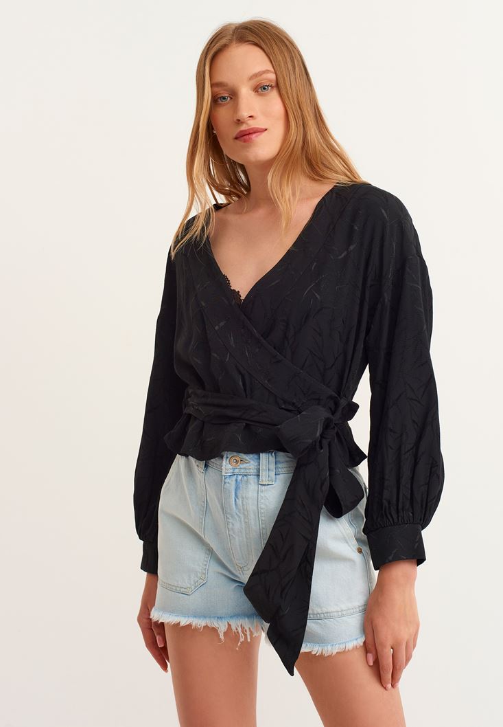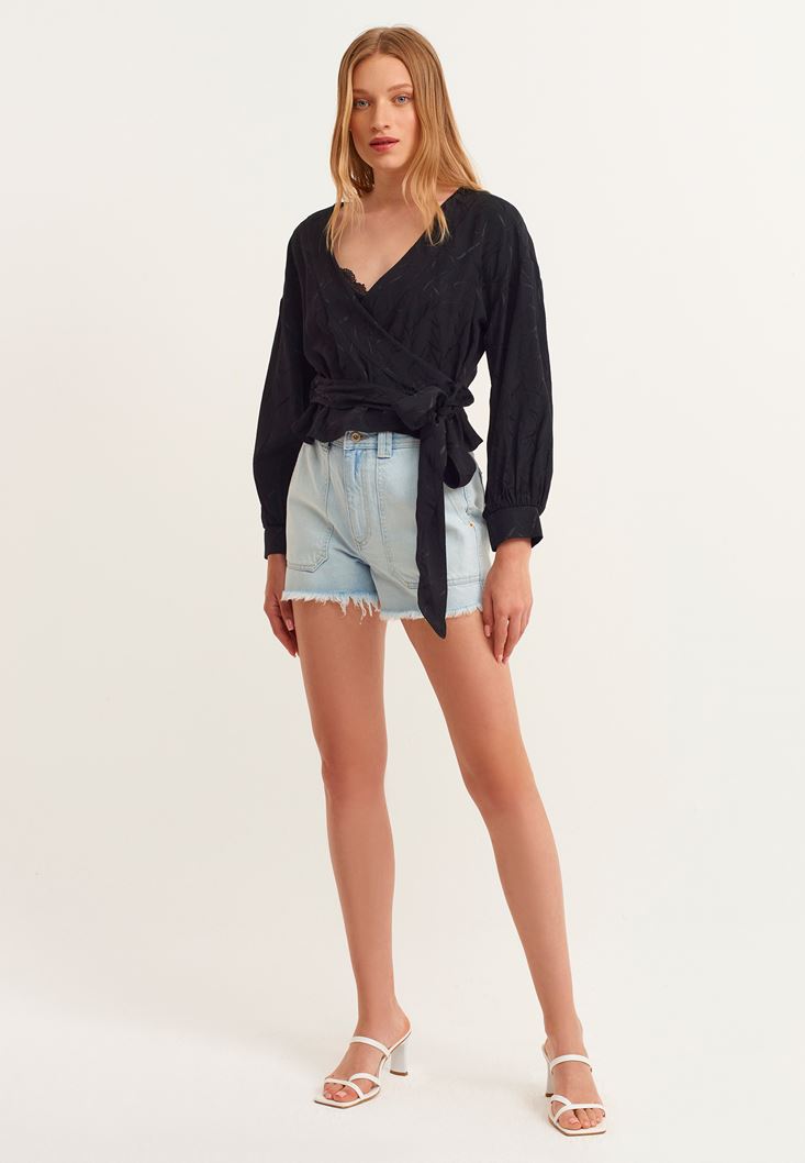 Bağlama Detaylı Kimono ve Denim Şort Kombini