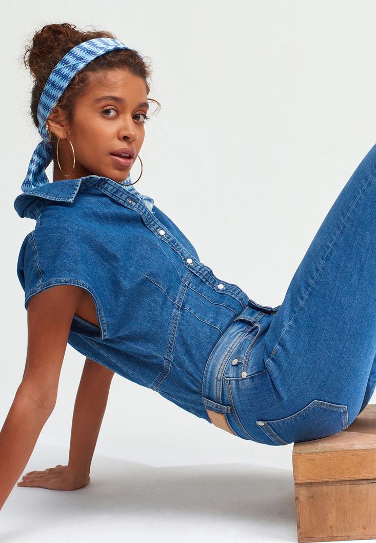Slim-fit kalıbın havalı duruşu bu denim pantolon modeli ile karşına çıktı! Onu crop topların yüksek enerjisi ile birleştirip arkadaş buluşmalarına hazır ol! :)