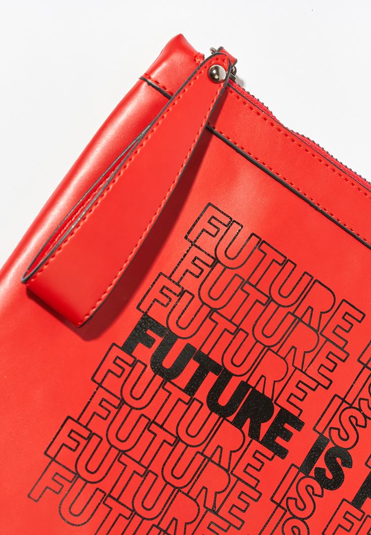 • Bayan Kırmızı Slogan Baskılı Clutch