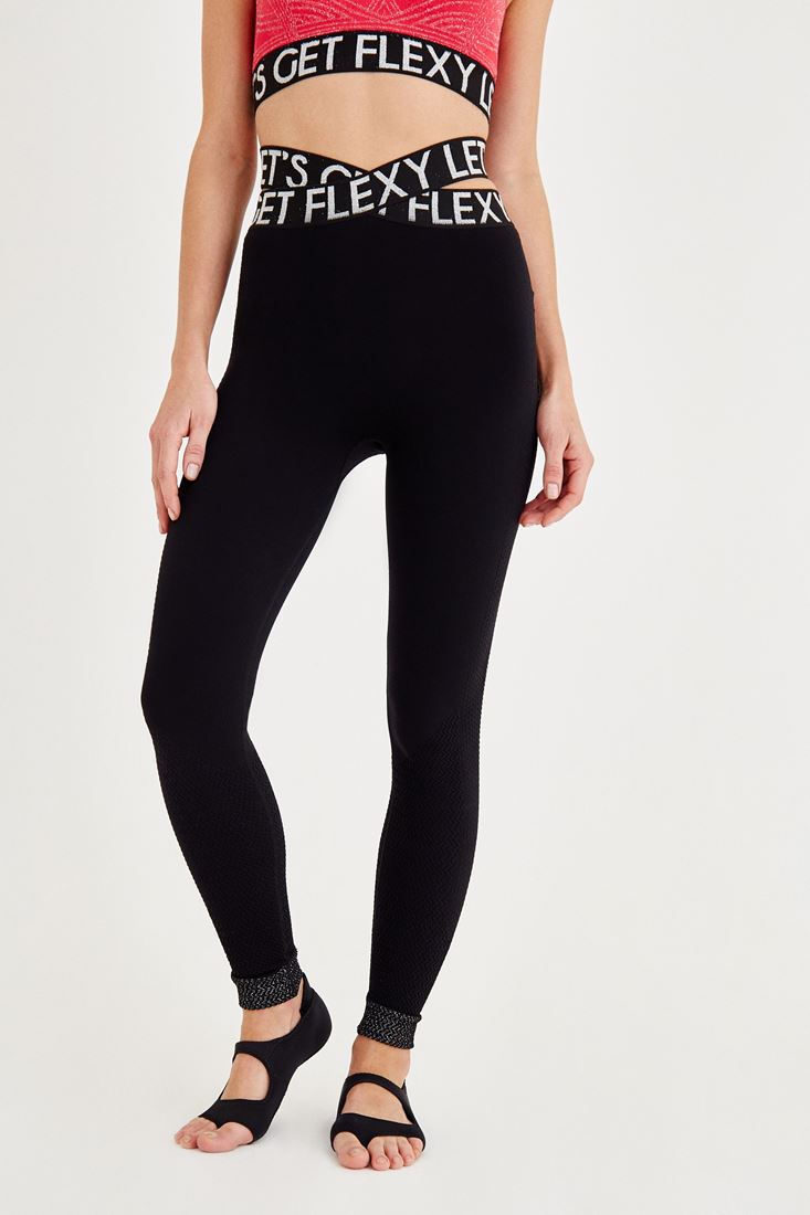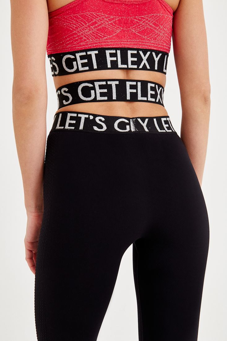 • Bayan Siyah Slogan Detaylı Spor Tayt