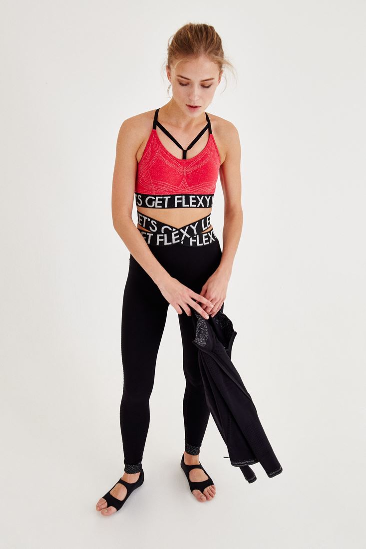 Slogan detayli spor tayt modeli vücudunuzu saran yapisi ve sahip oldugu bant detaylari ile oldukça sik bir görünüme sahip. Dikis detaylar ile vücudu basarili bir sekilde saran tayt modelinin bel kesiminde bulunan bant detay tasarimin görünüsünü dikkat çekici bir seviyeye tasiyor. Bel bölgesini çapraz saran bantlarin üzerinde yer alan slogan detaylar da tasarimin enerjisini yükseltiyor. Slogan detayli tayt modelinin bilek kesiminde yer alan katlanmis parçanin isiltili bir dokuya sahip olmasi da tasarimin bütününde dikkat çekiyor. Crop top bluz modelleri ve büstiyerler ile birlikte kullanabileceginiz tayt modelleri arasinda yer alan tasarim, OXXO'nun dokularin ve detaylarin sikligini basarili bir sekilde harmanladigi tasarimlari arasinda yer aliyor.