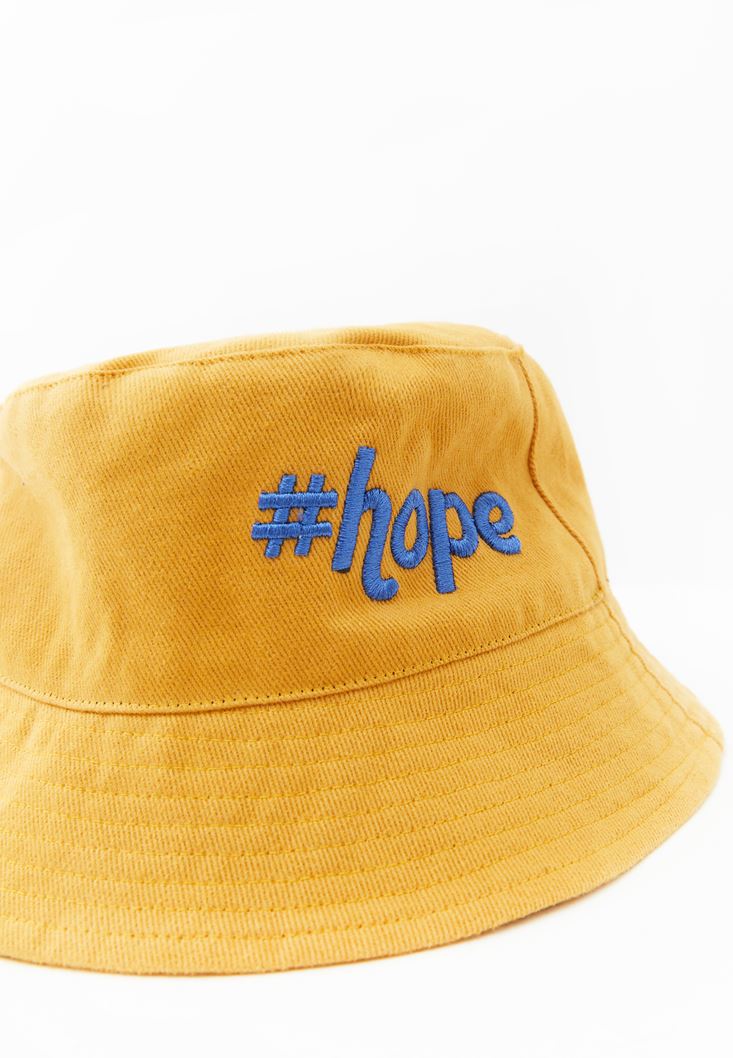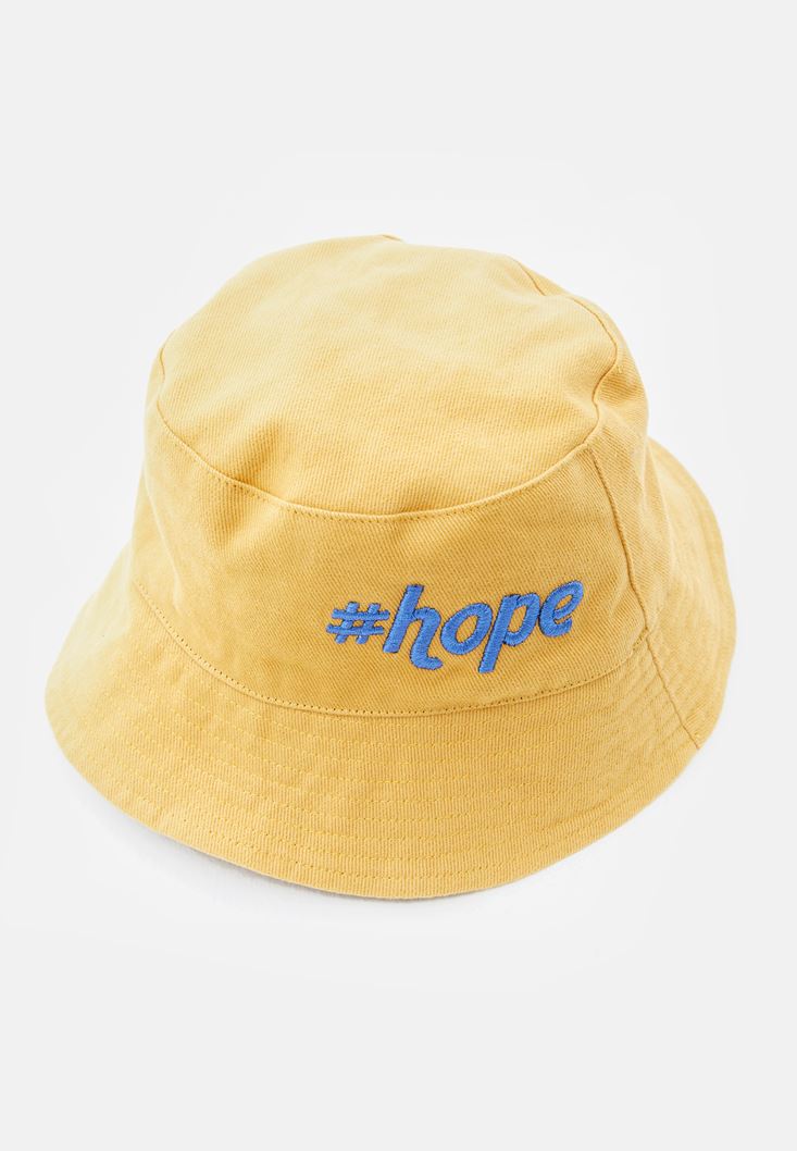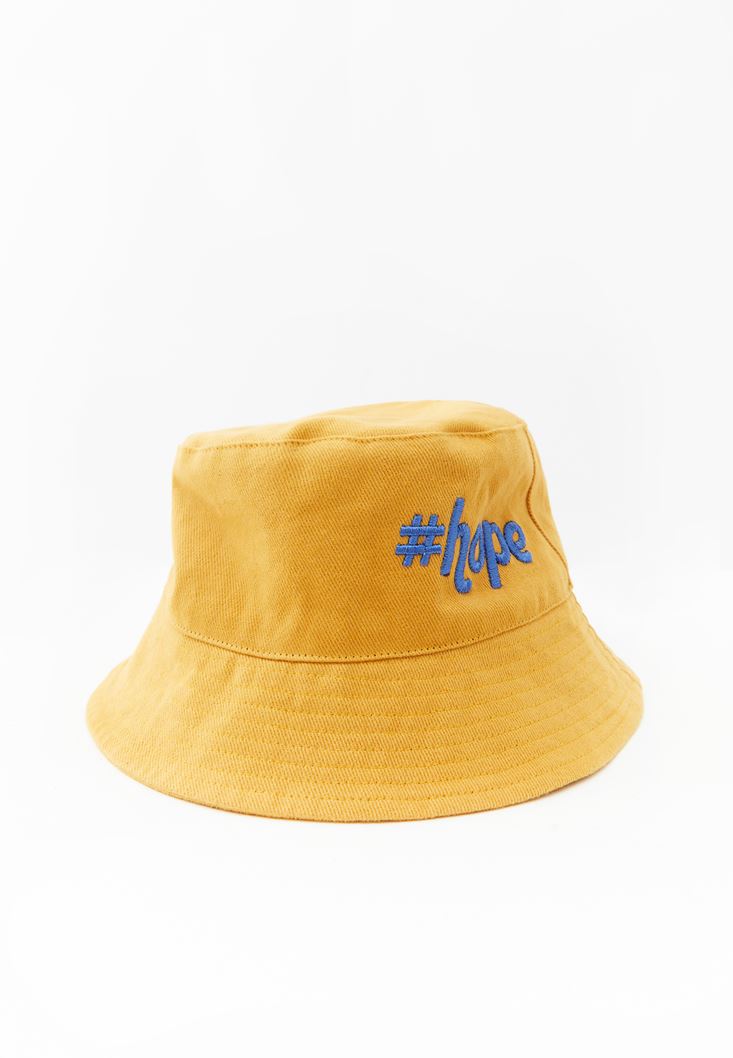 Sarı Sloganlı Bucket Şapka