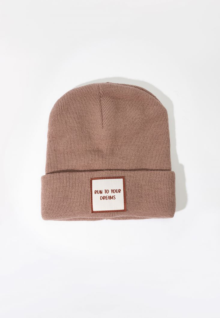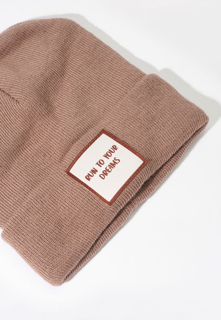• Bayan Bej Sloganlı Örgü Bere
