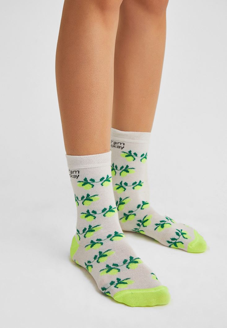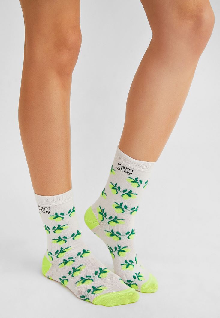 • Bayan Yeşil Sloganlı ve Desenli Çorap