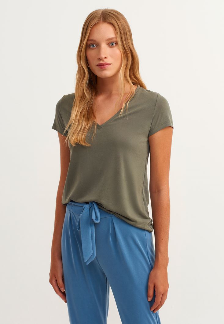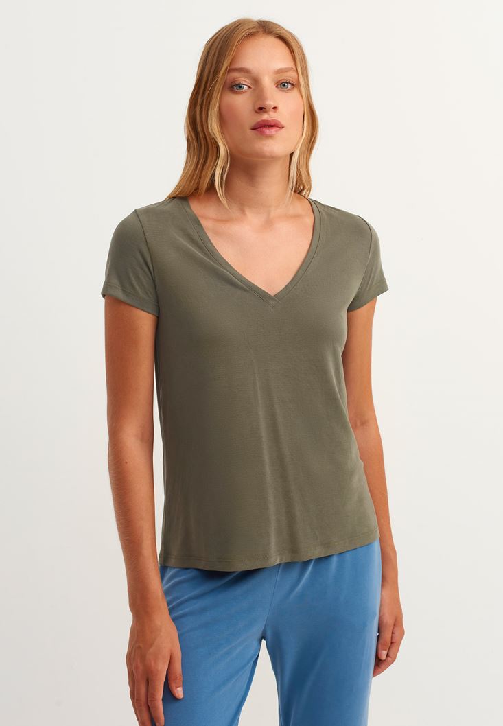 Yumuşak Tuşeli V Yaka Tişört ( MODAL )
