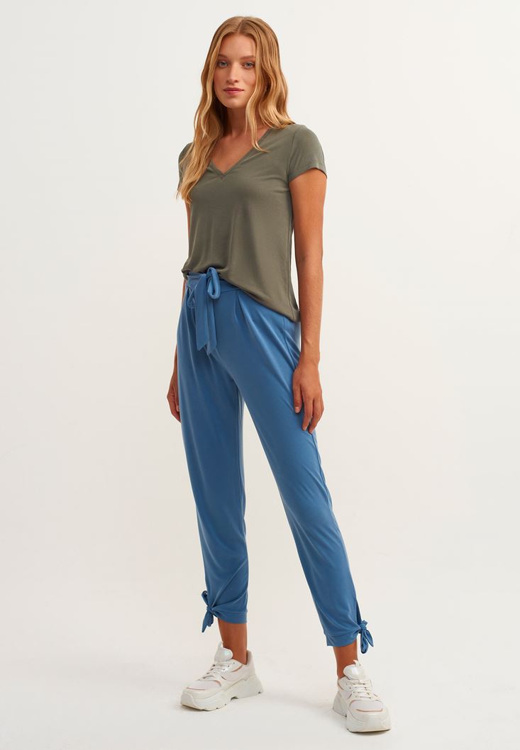 Soft-Touch V Yaka Tişört ve Cupro Pantolon Kombini
