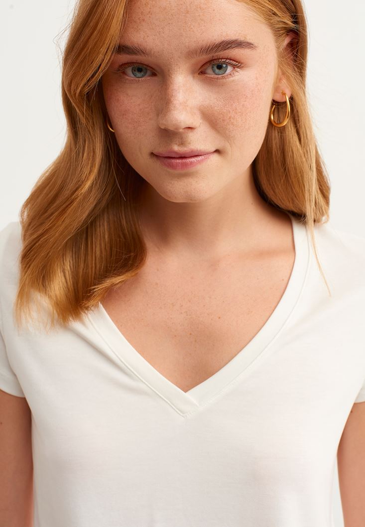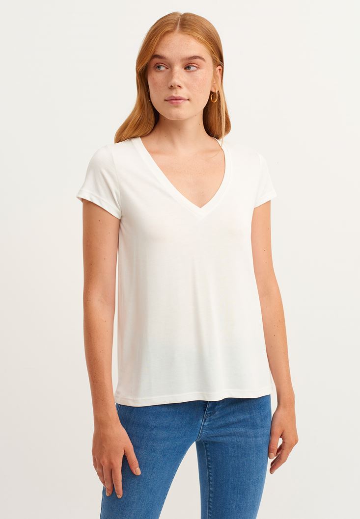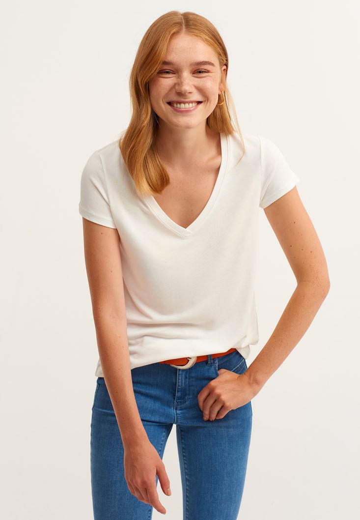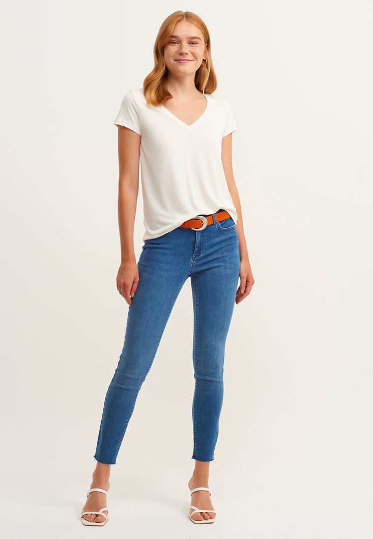 Soft-Touch V Yaka Tişört ve Skinny Pantolon Kombini
