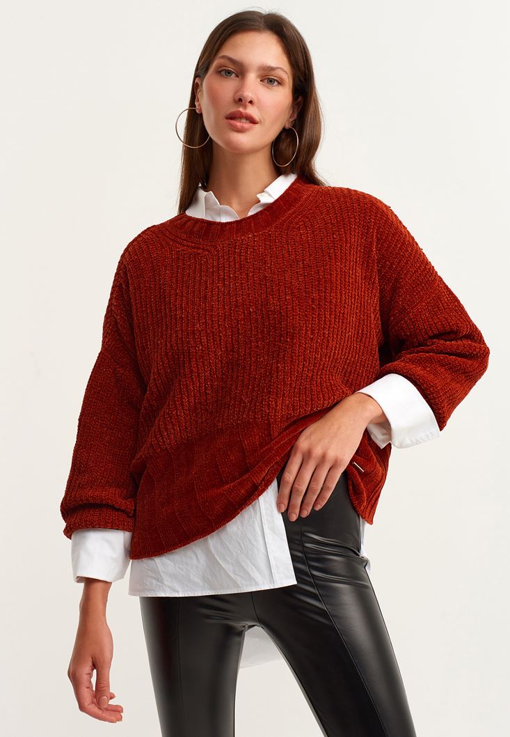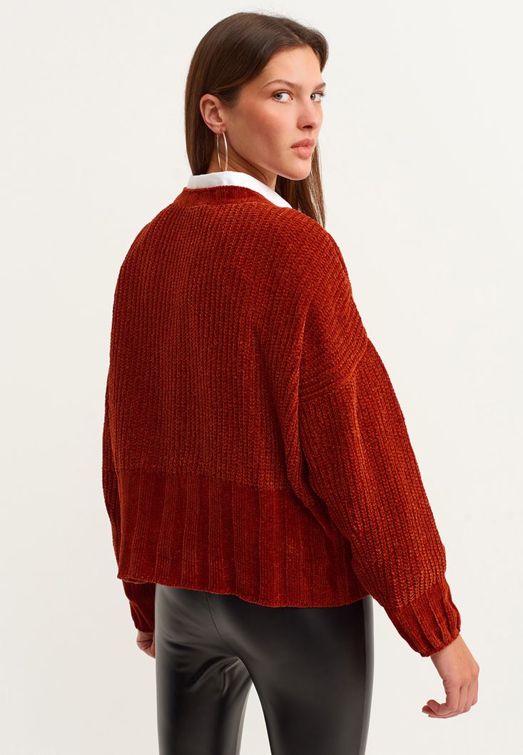 Kiremit Şönil Örgülü Wide-Fit Triko