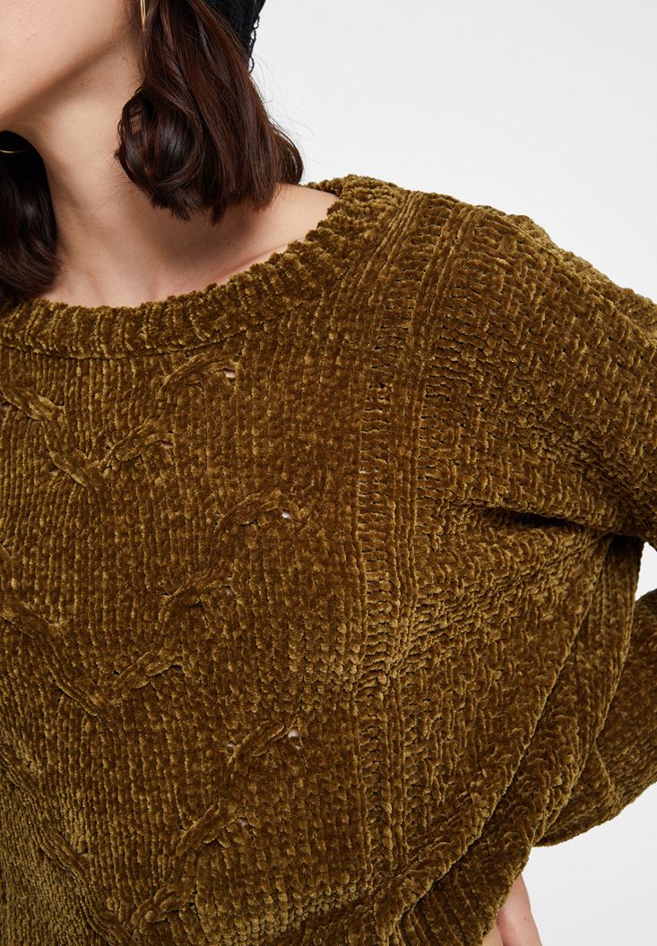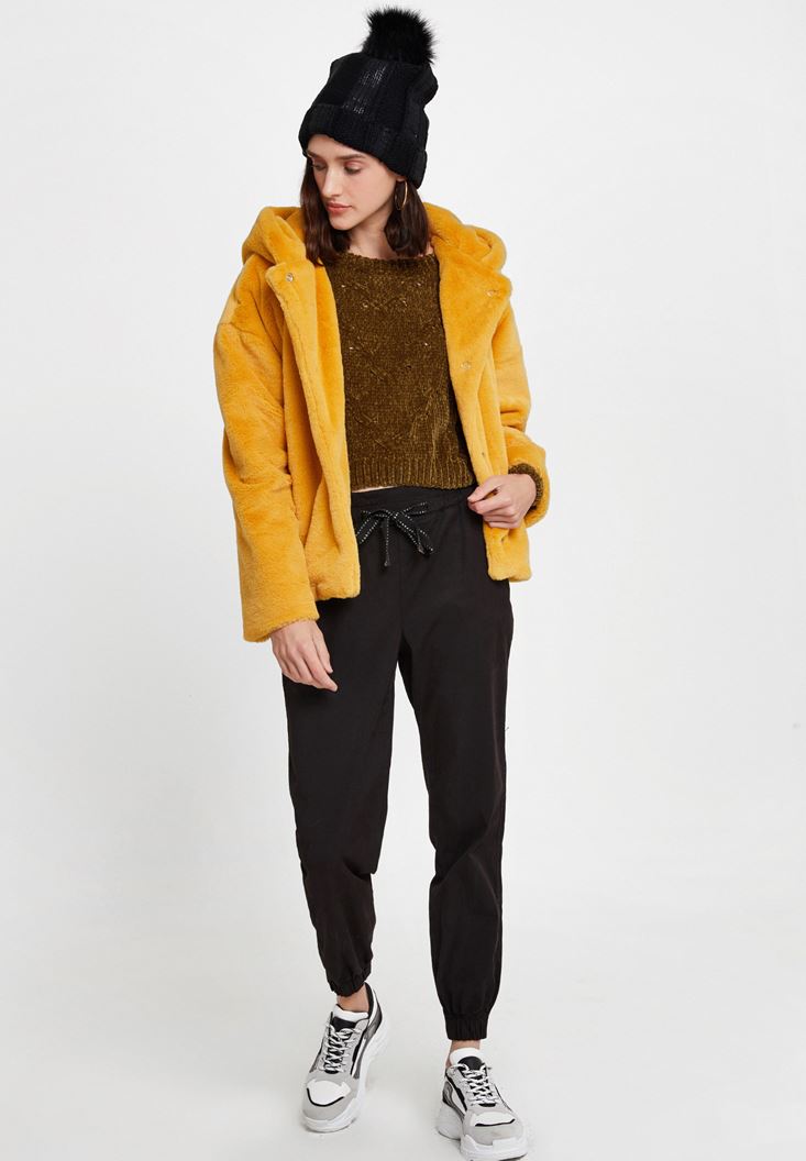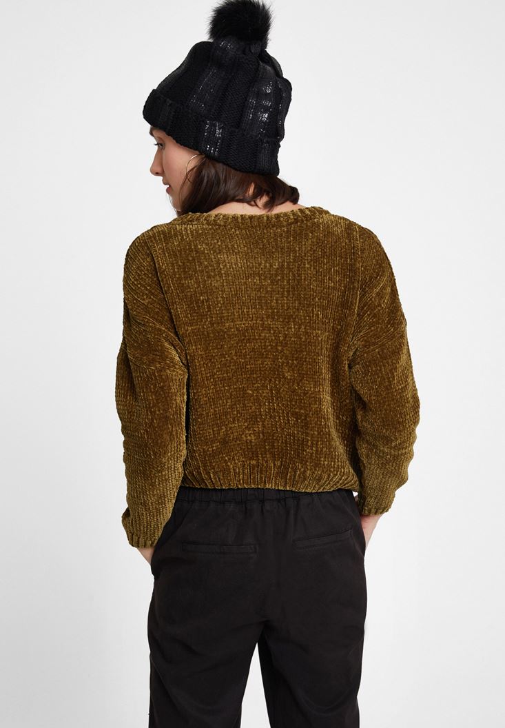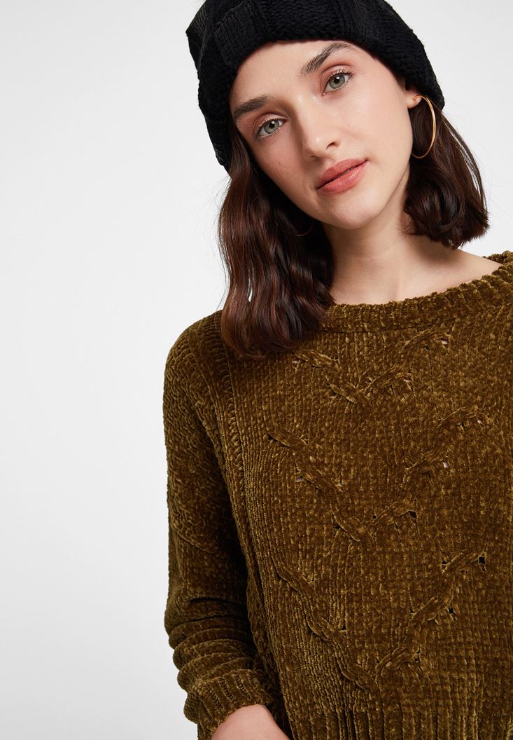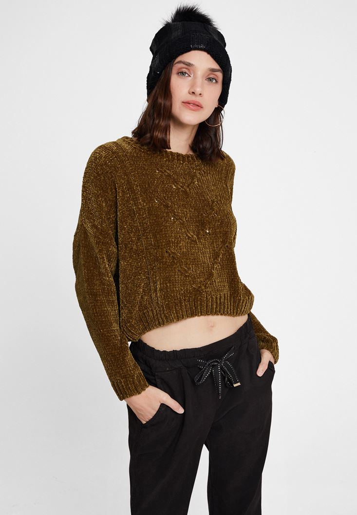 Şönil Triko modeli detaylardan gelen şıklığı zarif dokunuşlar ile ön plana çıkaran tasarım anlayışı ile kombinlerinizde yer vermekten zevk alacağınız triko modelleri arasında yer alıyor. Crop top kesim bluz modellerini andıran bel boyu ile yüksek ya da düşük bel kesime sahip pantolonlarla birlikte kullanabileceğiniz triko modeli konforlu dokusu sayesinde kombinlerinize rahatlık kazandıracak. Bisiklet yaka kesime sahip olan triko modelinin yaka, bel ve kol kesimlerinde kullanılan lastik formundaki detaylar tasarımın vücuttaki duşunu güçlendiriyor. Triko modelinin en kısmında bulunan desen detaylar da tasarıma hoş bir hava kazandırıyor. OXXO’nun enerjisini ve ilhamını ön plana çıkaran tasarımlardan birisi olan triko modeli ile konforlu şıklığın tadını çıkarabilirsiniz.
