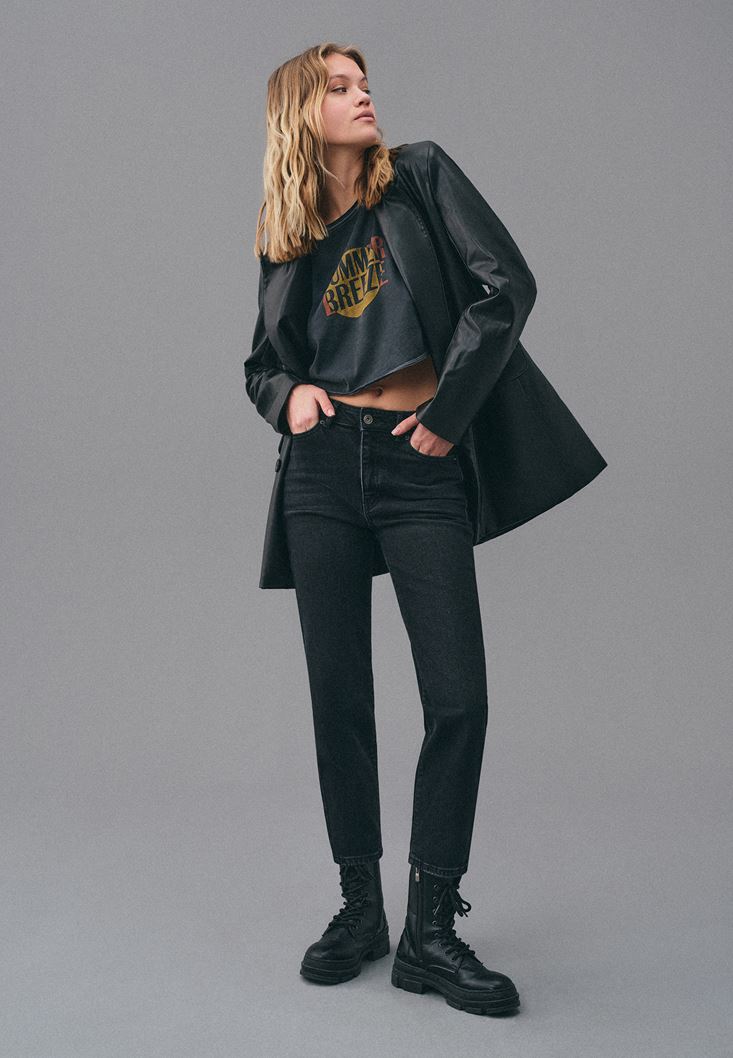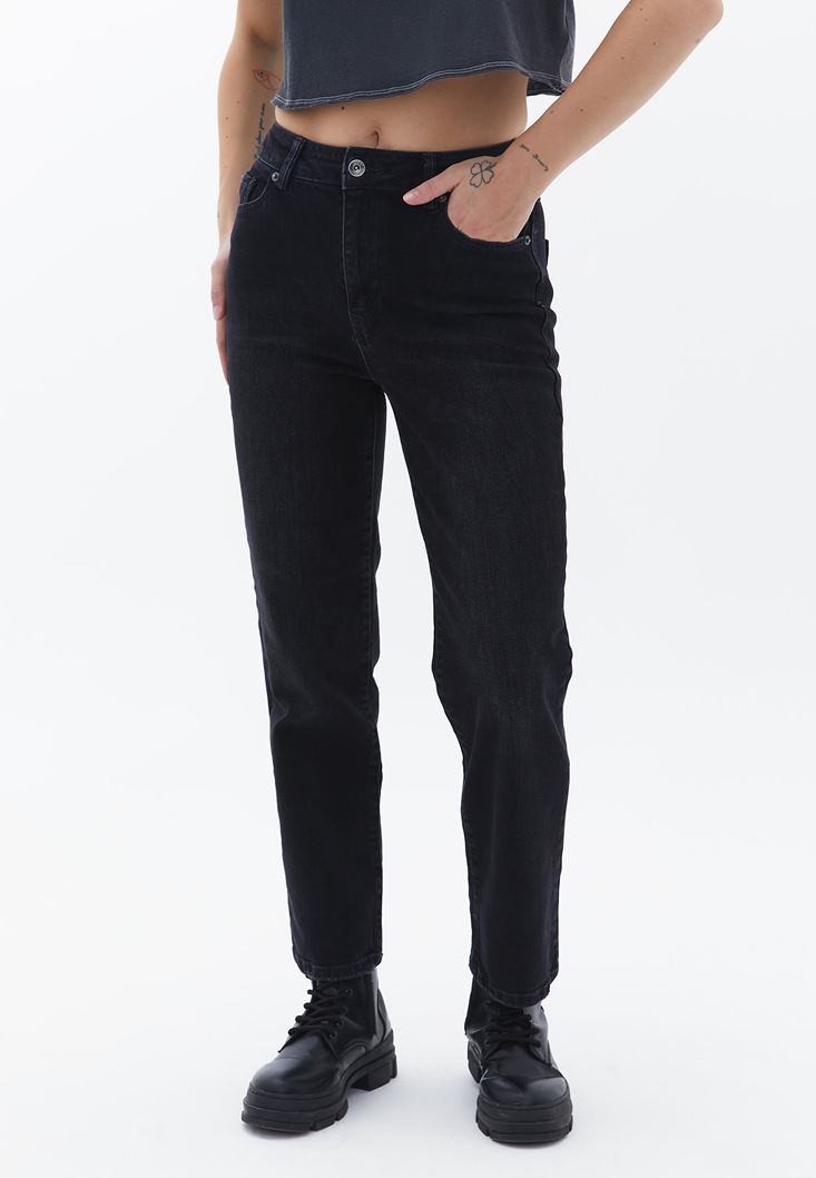 • Bayan Siyah Straight-Fit Denim Pantolon