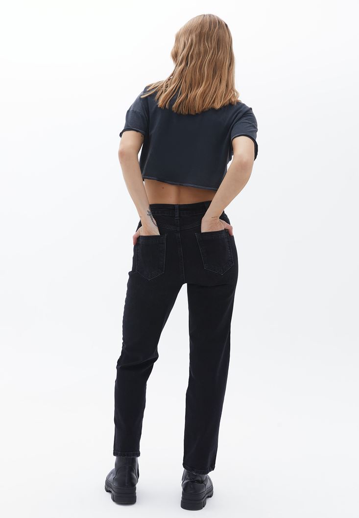 Siyah Straight-Fit Denim Pantolon