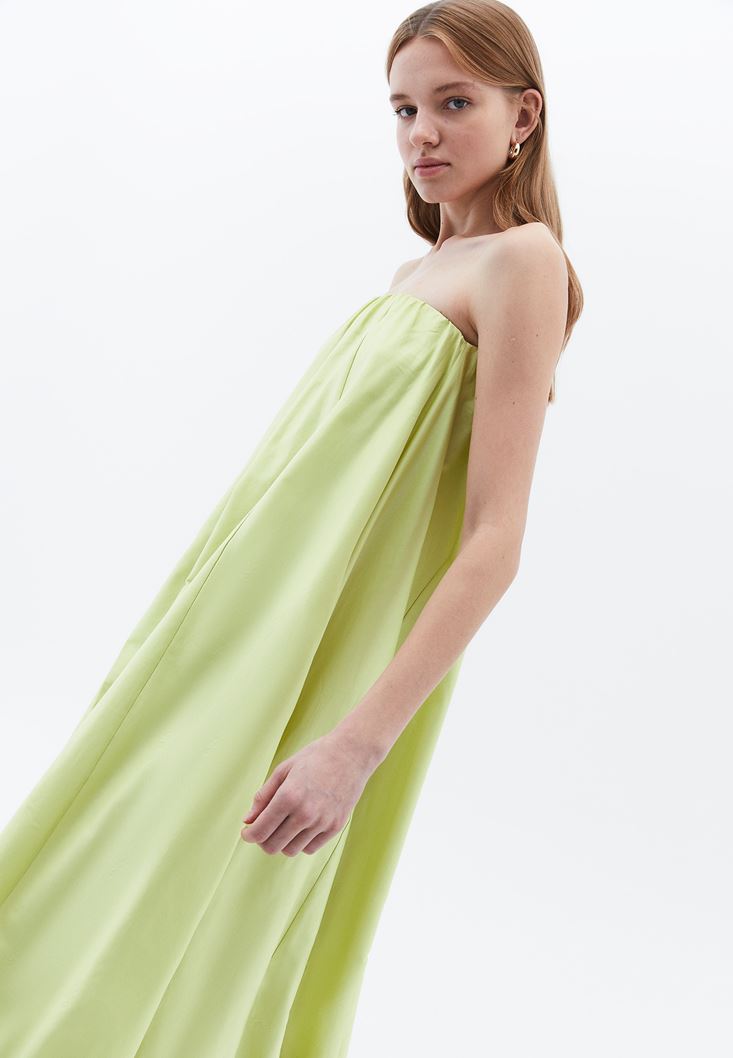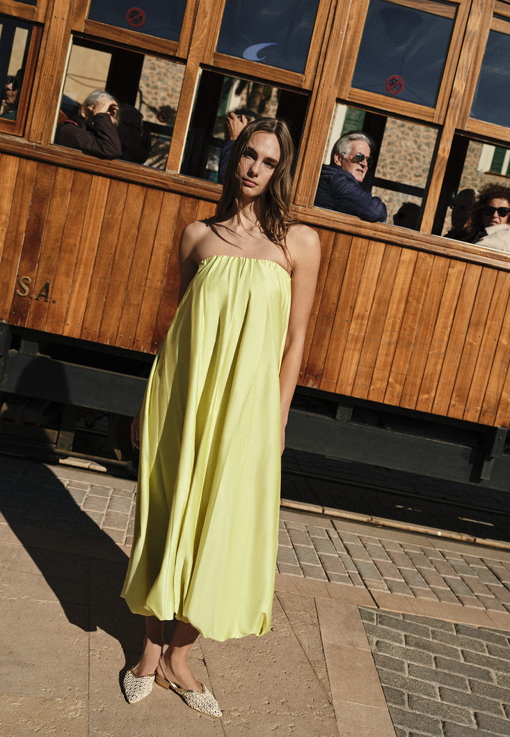 Straplez Balon Elbise ve Bantlı Terlik Kombini