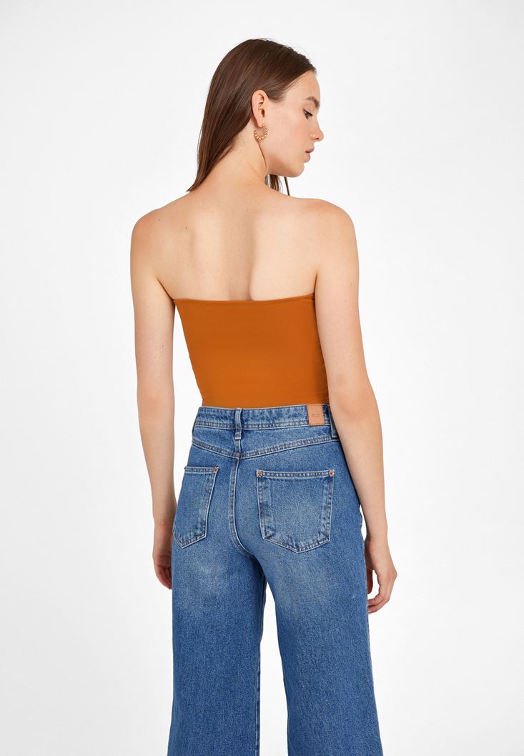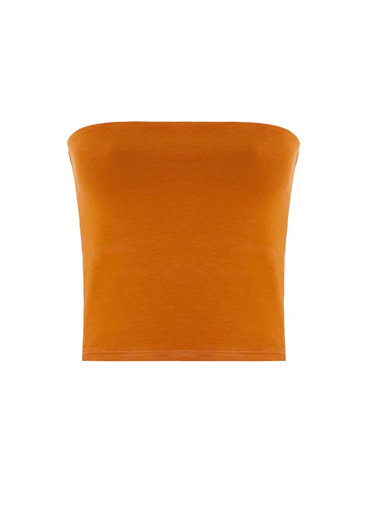 Pamuklu yumuşak doku, bedeni saran esnek fit, straplez tasarım, crop kesim.