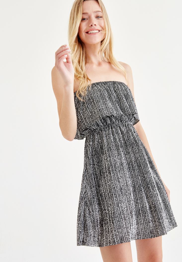 Straplez Kısa Desenli Elbise