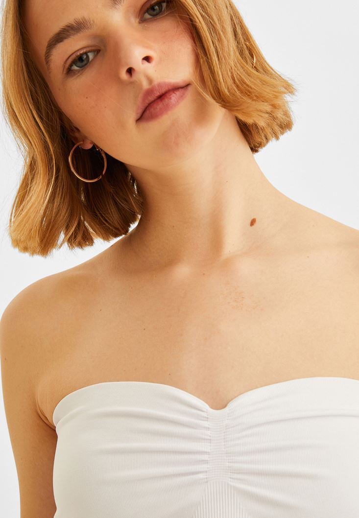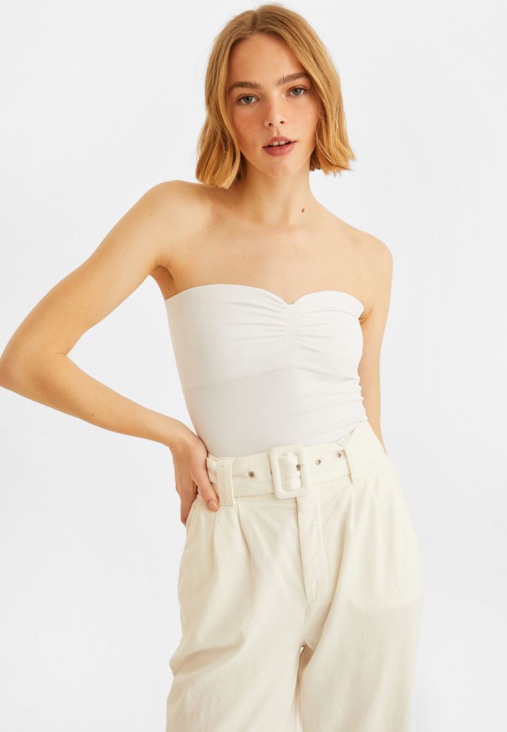 Straplez Kısa Bluz modeli, yumuşacık dokusu ve bedeni saran hafif kumaşı ile Oxxo'da karşınıza çıkıyor. Straplez bluz modeli, dikişsiz yapısı ve ön kısmındaki büzgülü görünümü ile yeni sezonda sizlerle buluşuyor. Kısa bluz modelini, yüksek belli skinnylerle veya mini eteklerle bir araya getirerek harikalar yaratabilirsiniz. Topuklu ayakkabılarla veya sneakerlarla oluşturacağınız iddialı kombinleri straplez bluz modeli ile vurgulayabilirsiniz. Oxxo'nun dikişsiz dokularla ve etkileyici detaylarla sizlere sunduğu kısa bluz modelleri ile bulunacağınız her ortamda dikkatleri üzerinize çekebilirsiniz.