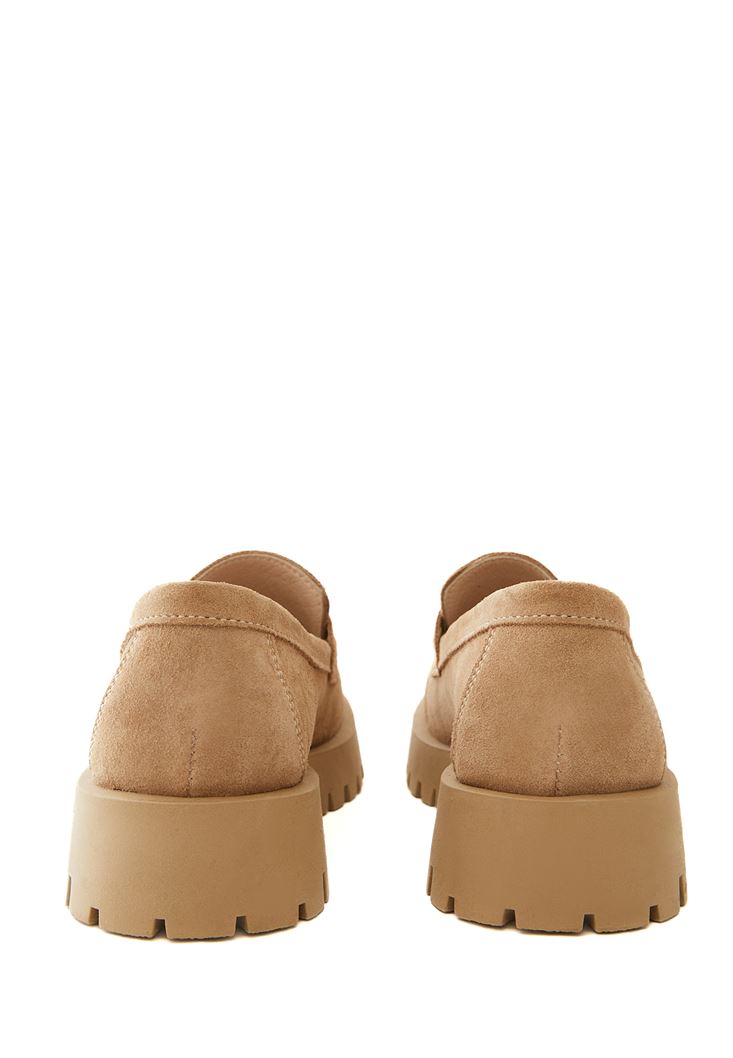 • Bayan Bej Süet Loafer Ayakkabı
