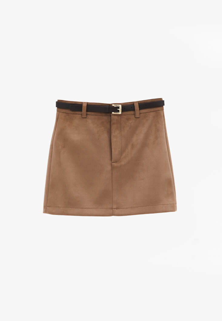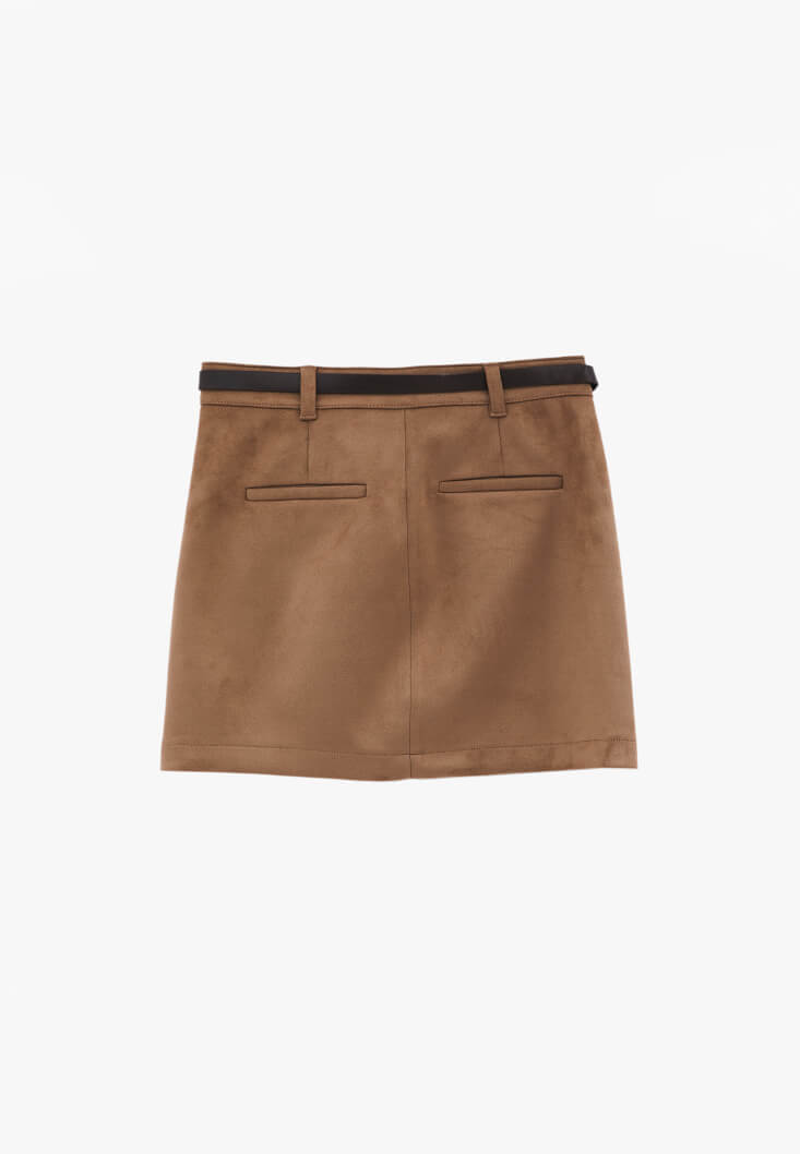 Kahverengi Süet Mini Etek