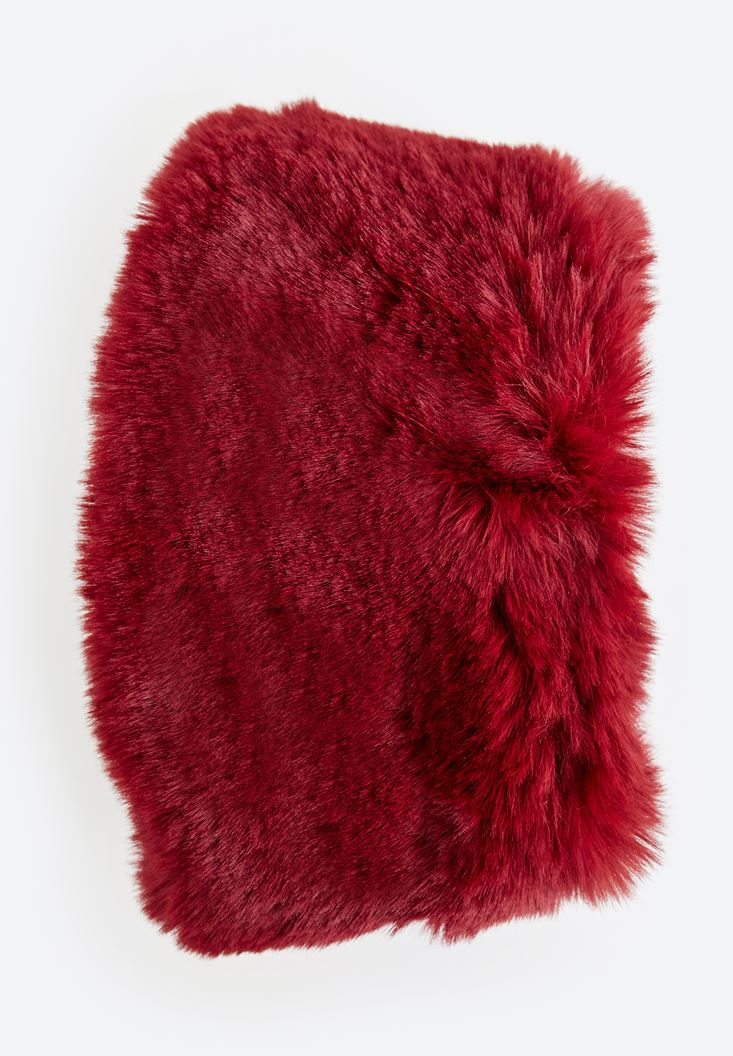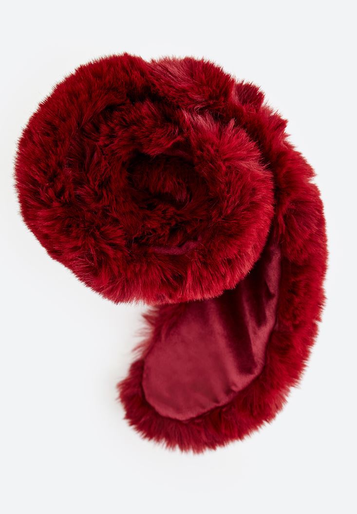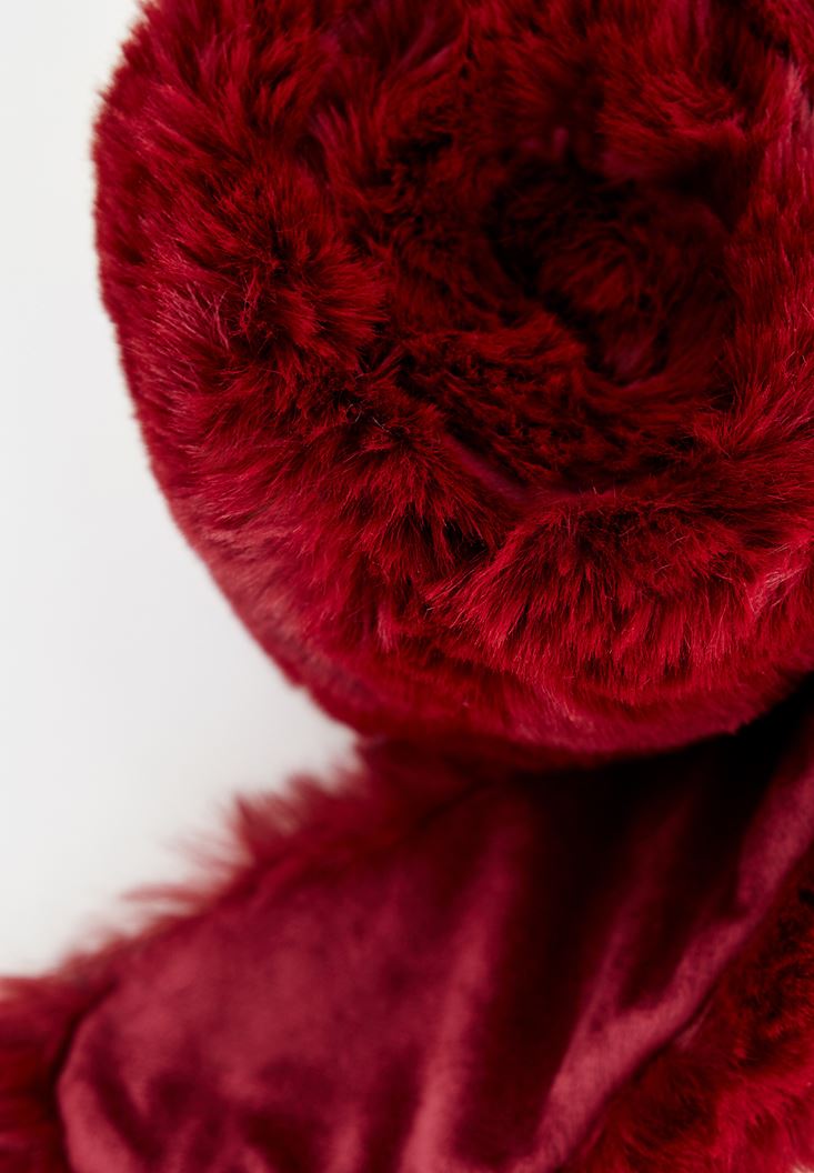 • Bayan Bordo Suni Kürk Detaylı Atkı
