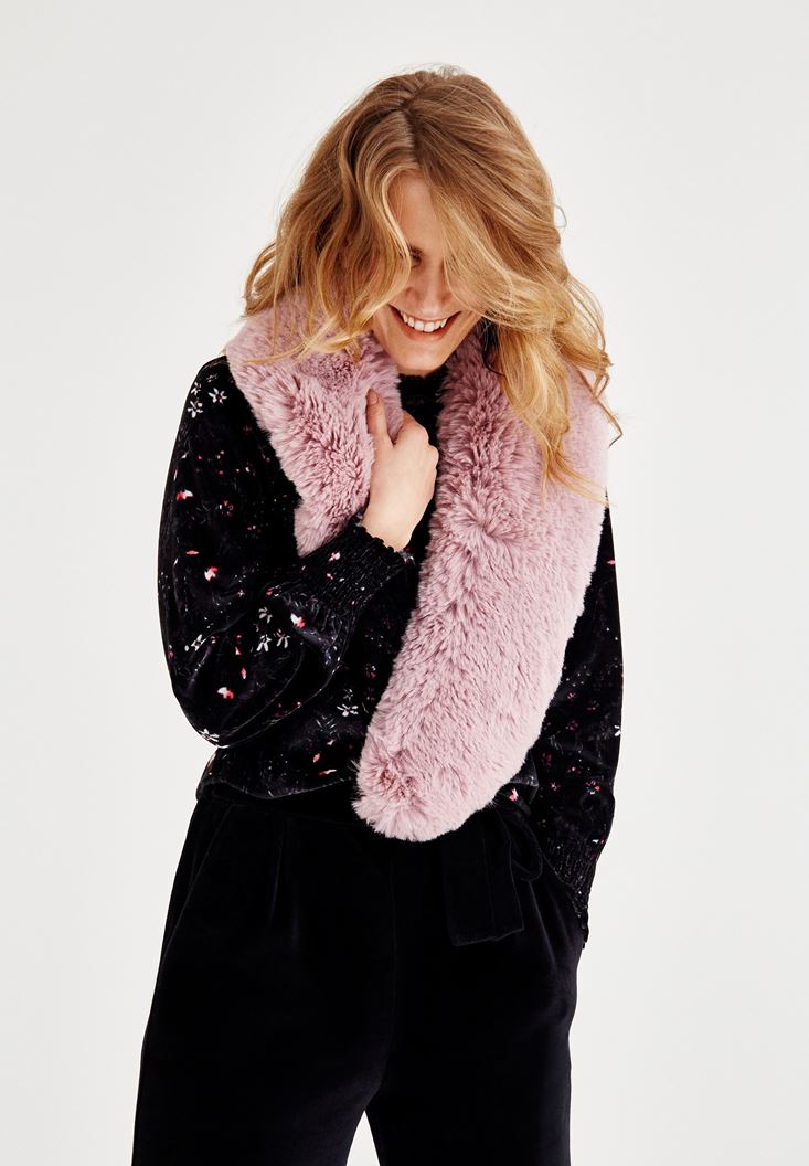 • Bayan Pembe Suni Kürk Detaylı Atkı