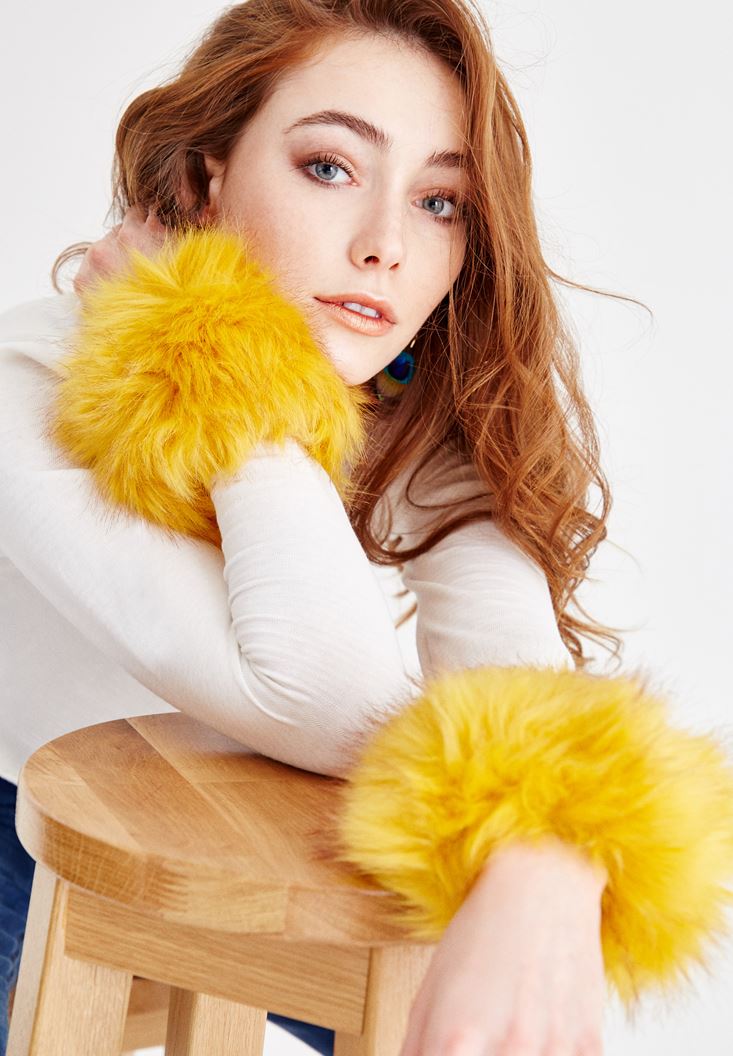 • Bayan Sarı Suni Kürk Detaylı Bileklik