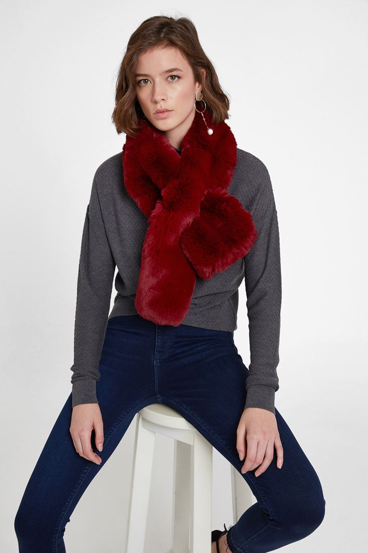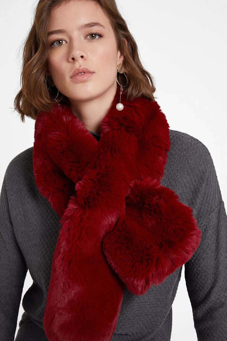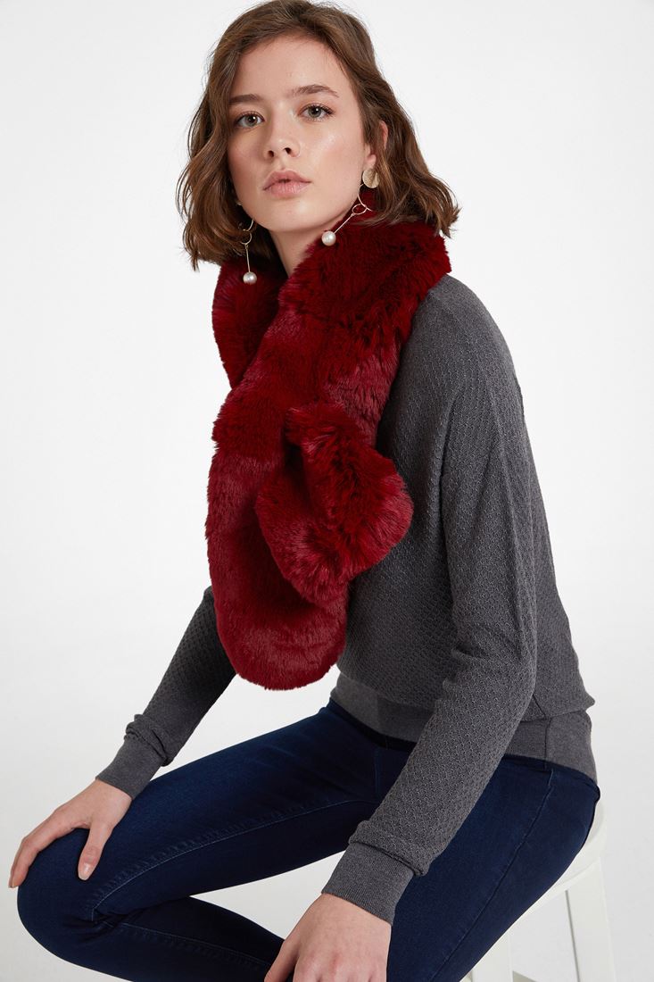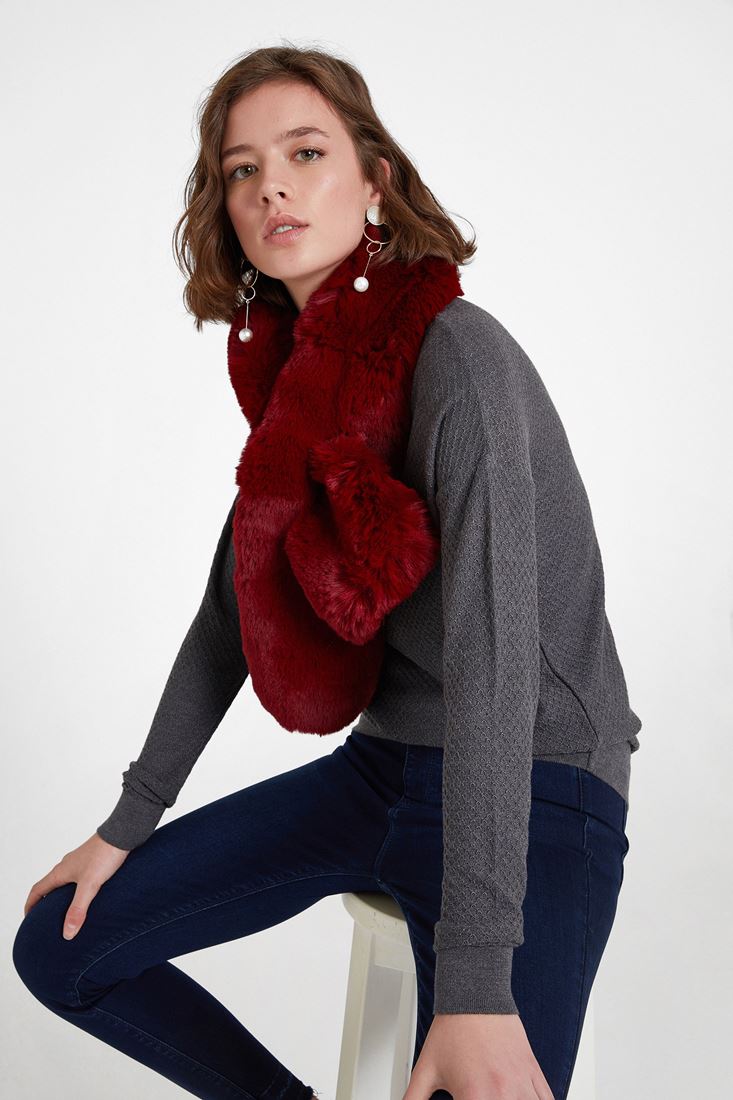 • Bayan Bordo Suni Kürk Detaylı Boyunluk