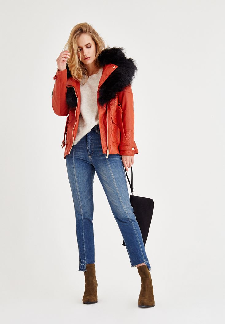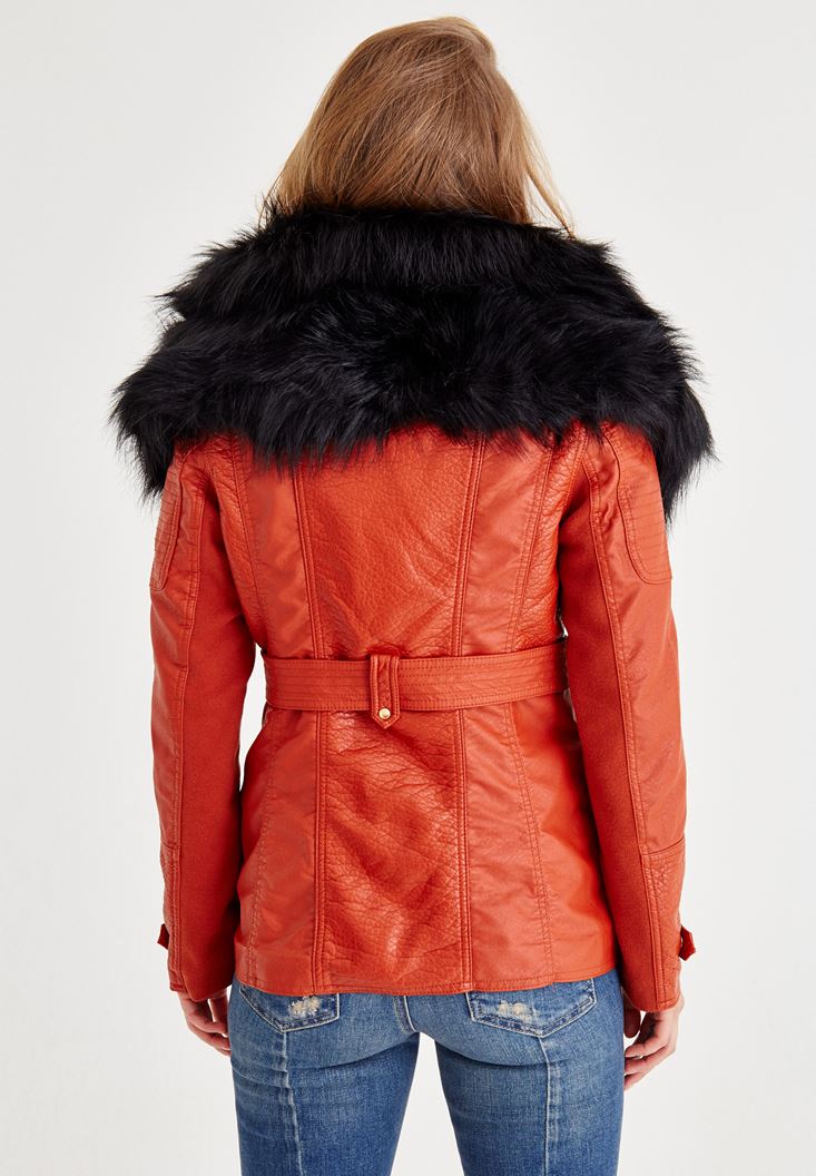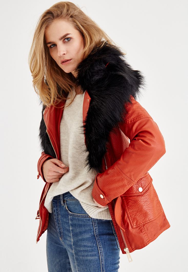 Kırmızı Suni Kürk Detaylı Ceket