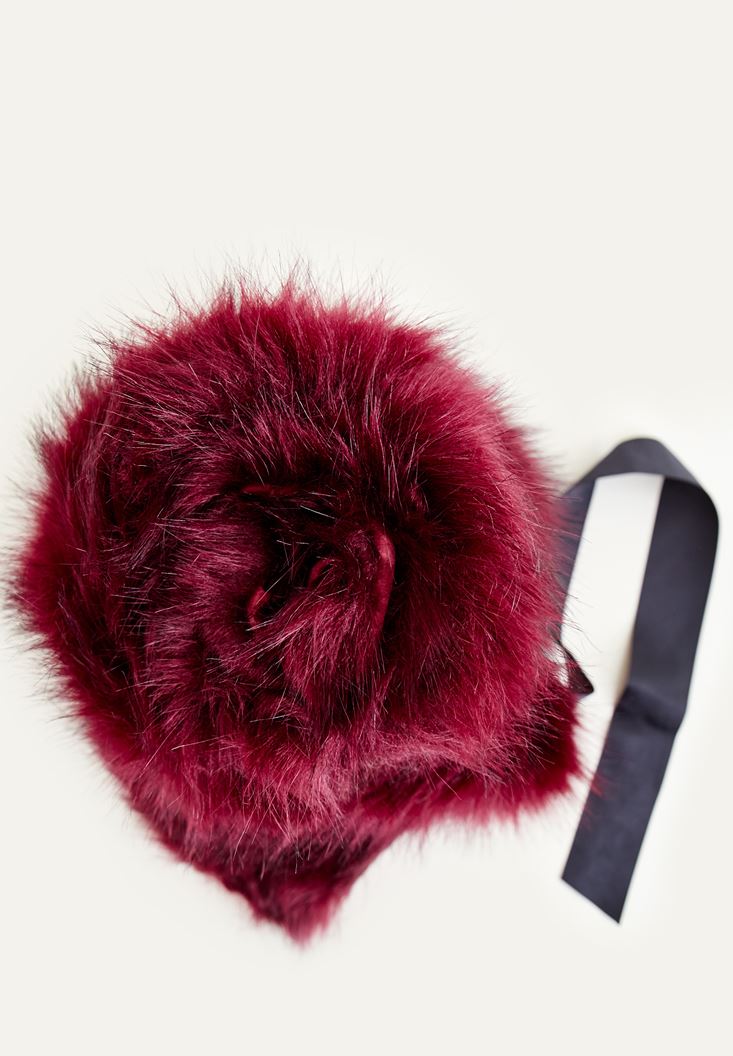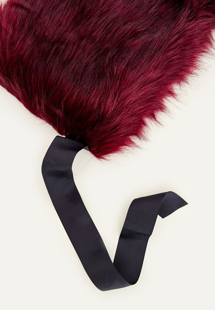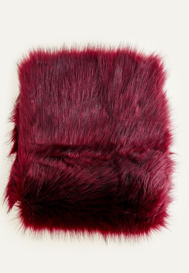 • Bayan Mor Suni Kürk İp Detaylı Şal