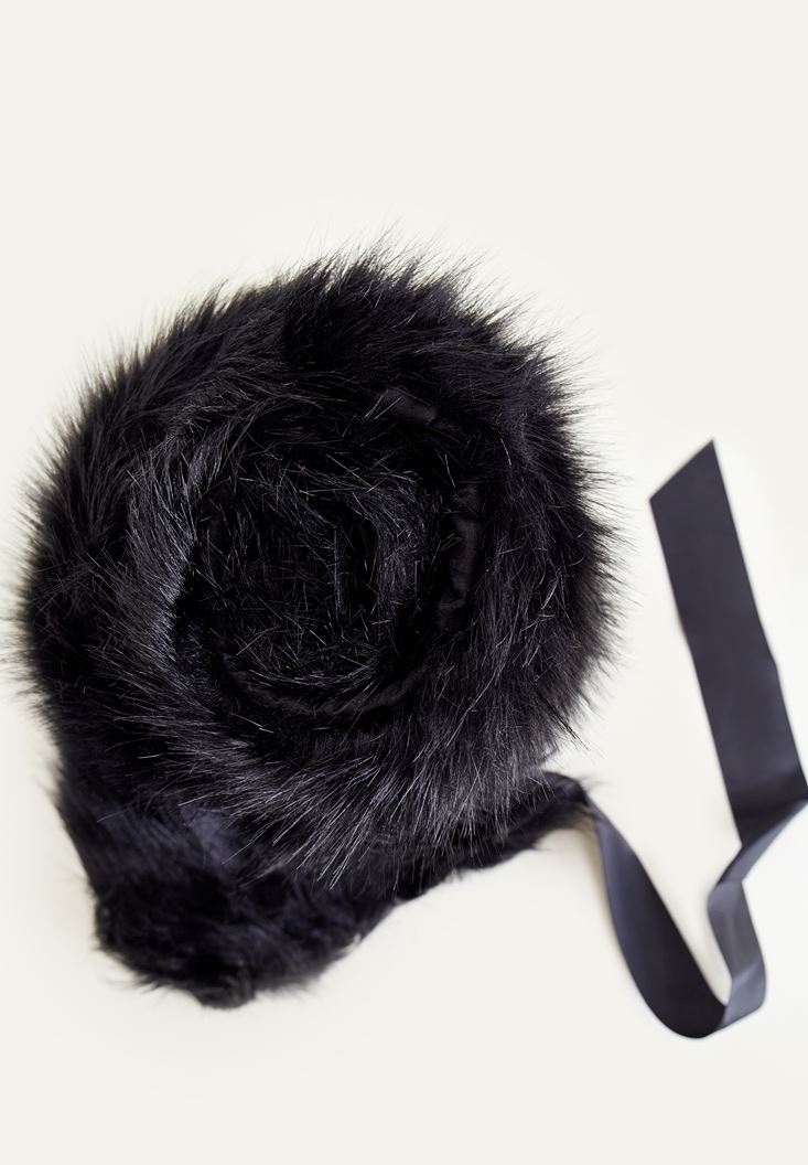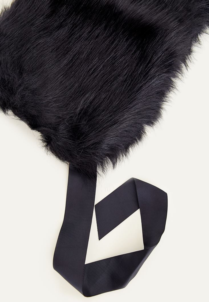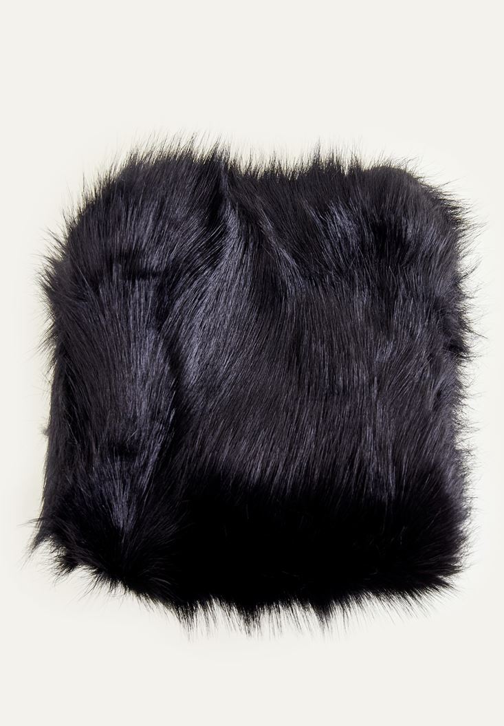 • Bayan Siyah Suni Kürk İp Detaylı Şal