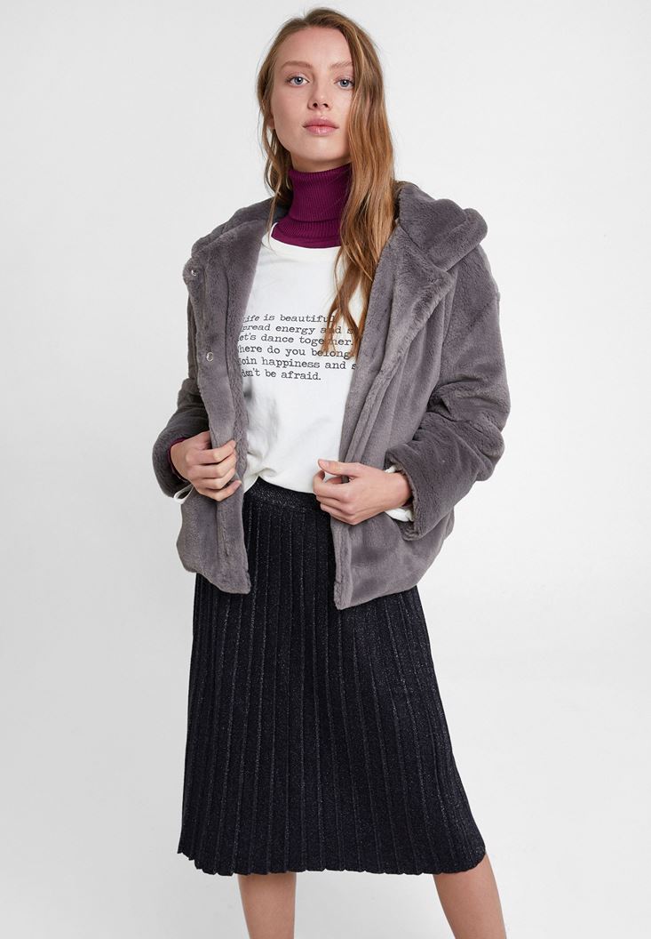 Oxxo Suni Kürk Kapüsonlu Ceket 2086743227