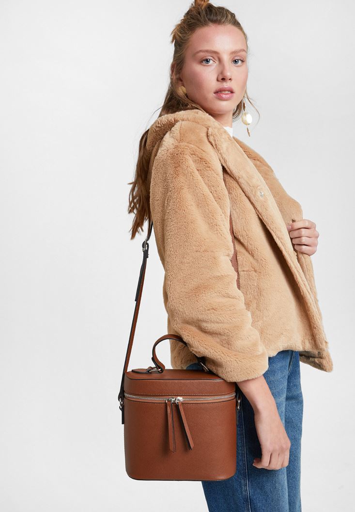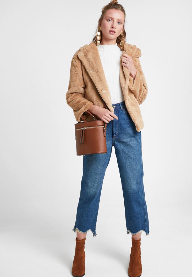 • Bayan Kahverengi Suni Kürk Kapüsonlu Ceket