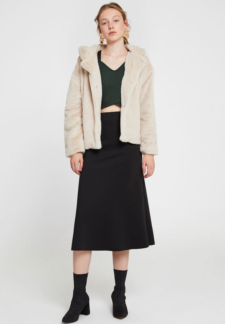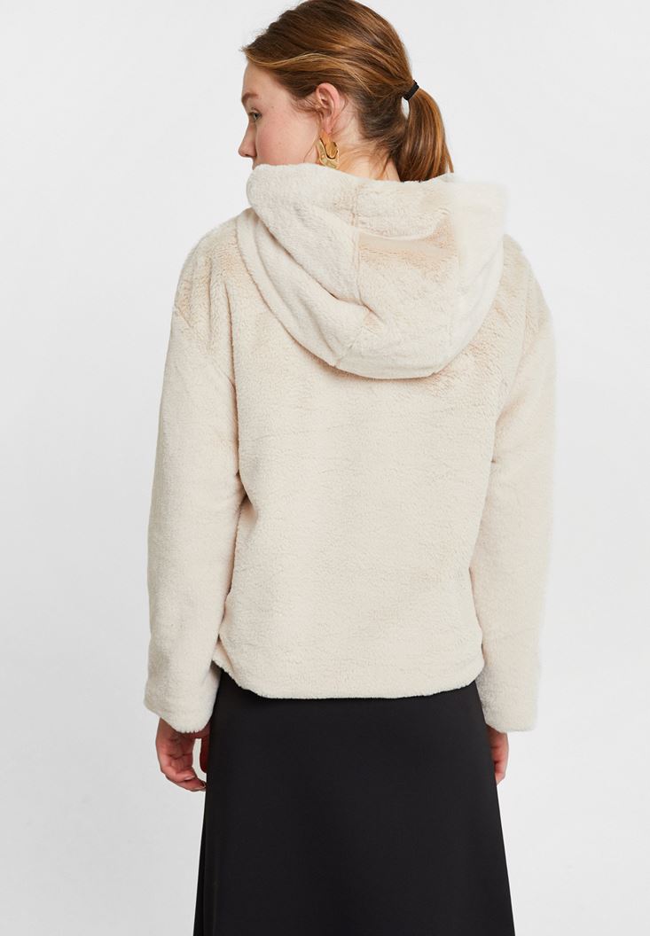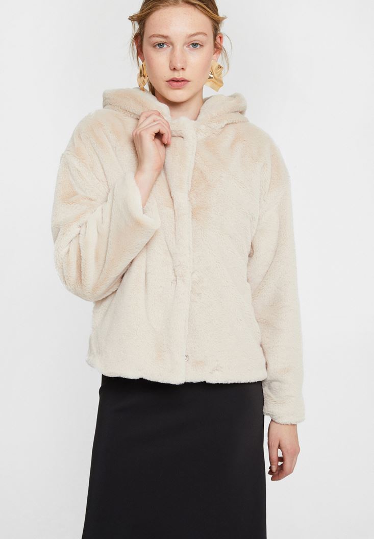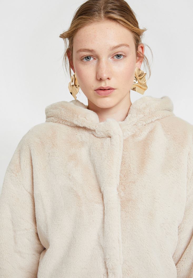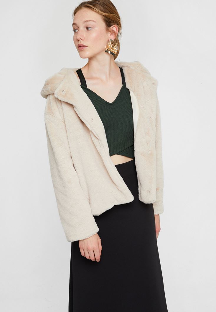 • Bayan Krem Suni Kürk Kapüsonlu Ceket