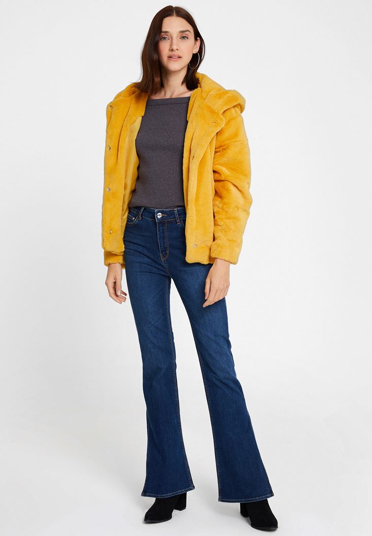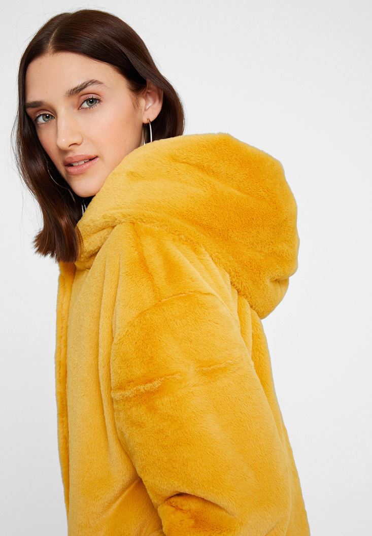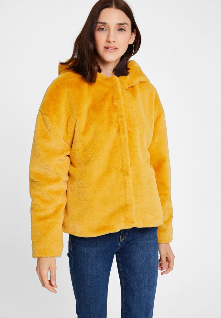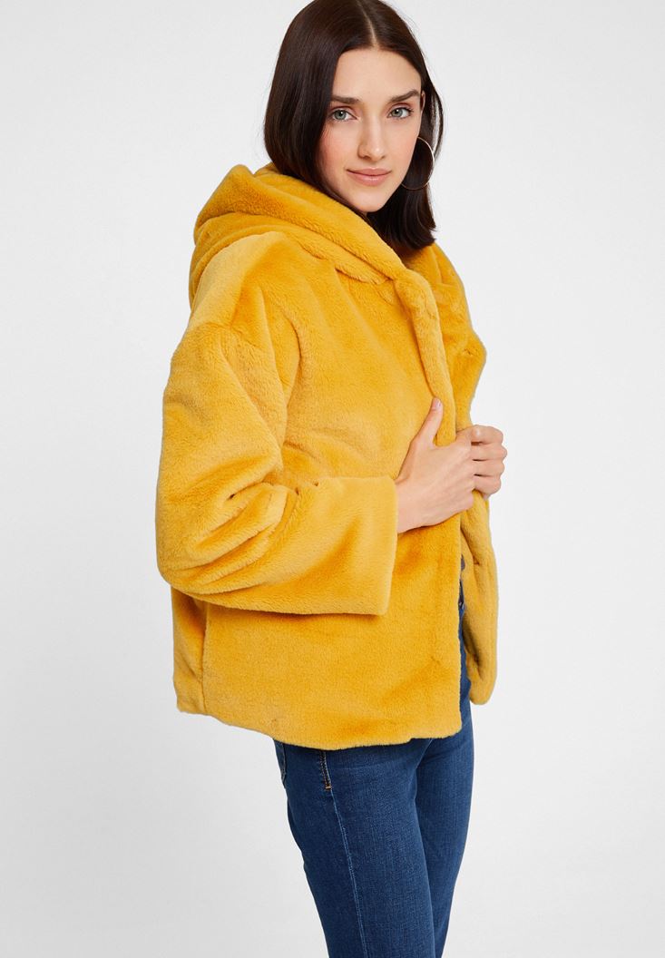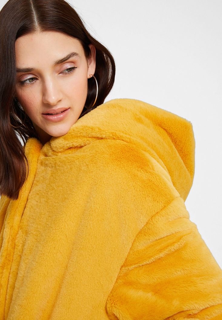 • Bayan Sarı Suni Kürk Kapüsonlu Ceket