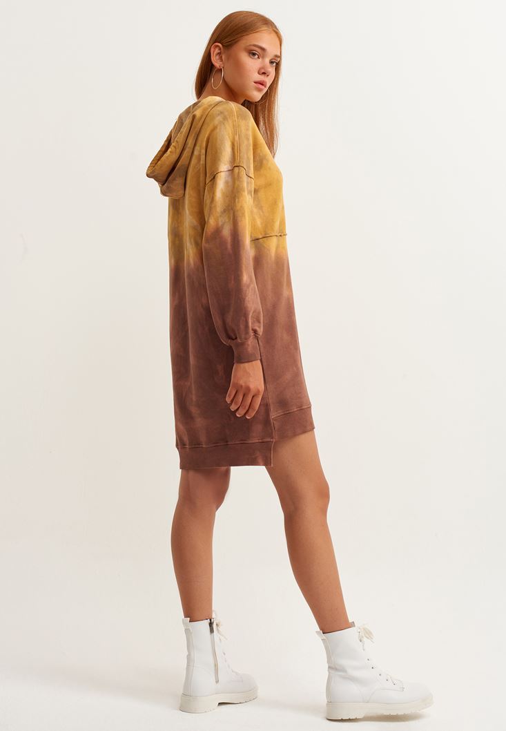 Çok Renkli Sunset-Fire Batik Sweat Elbise