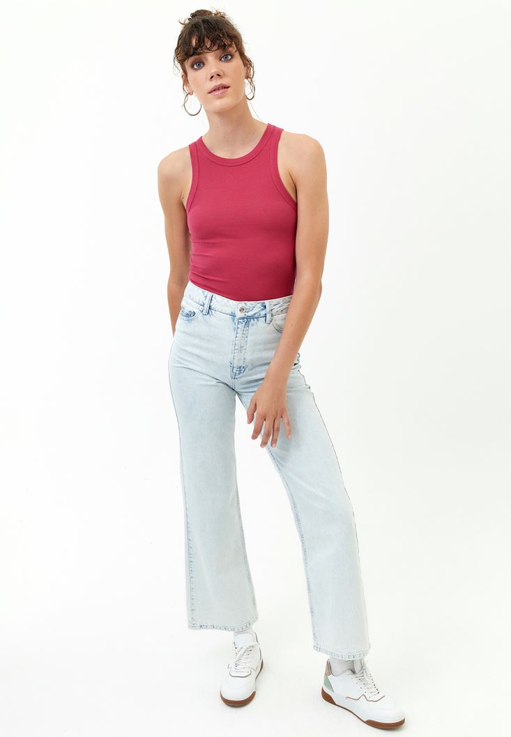 Tank Top ve Wide-Leg Denim Pantolon Kombini