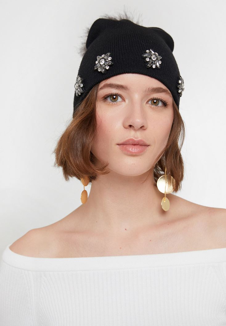 Siyah Taş Detaylı Bere