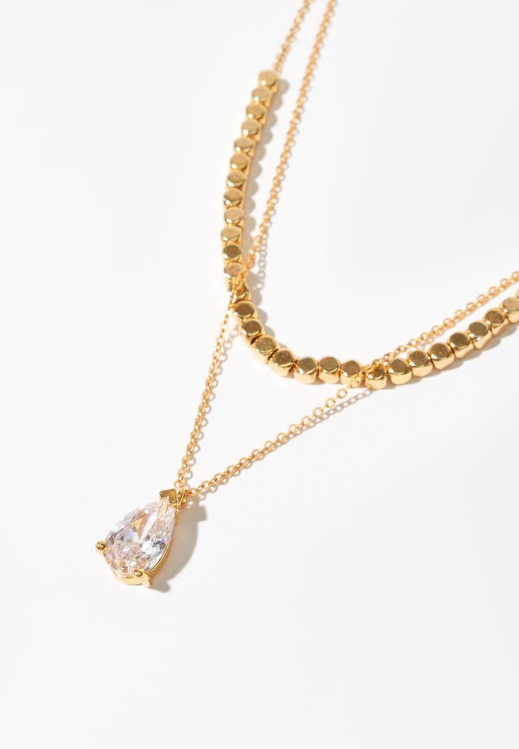 • Bayan Altın Taş Detaylı Çoklu Zincir Kolye