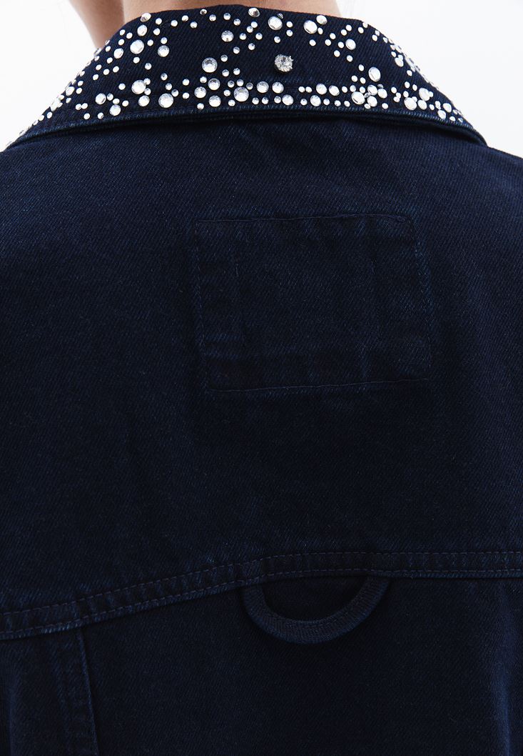• Bayan Mavi Taş Detaylı Crop Denim Ceket