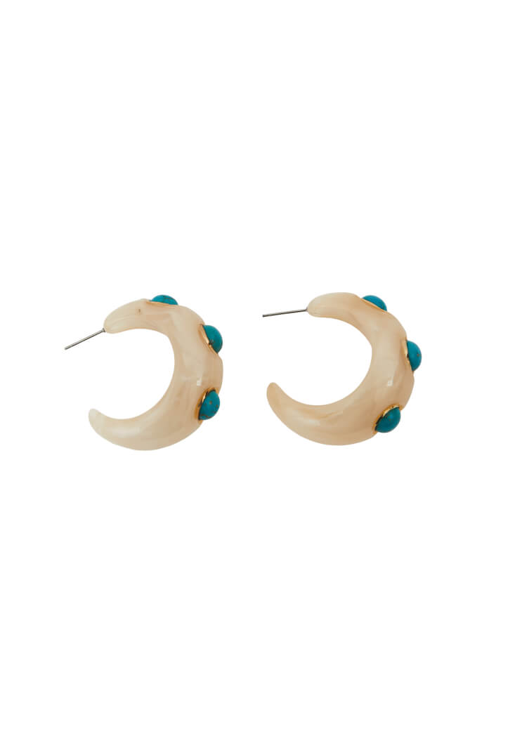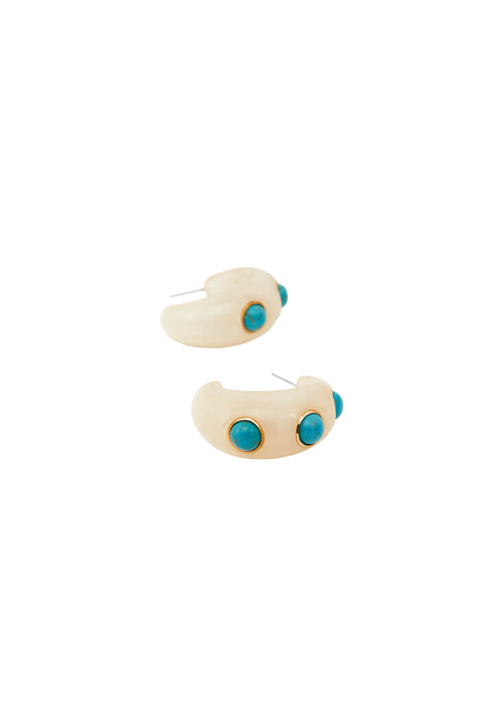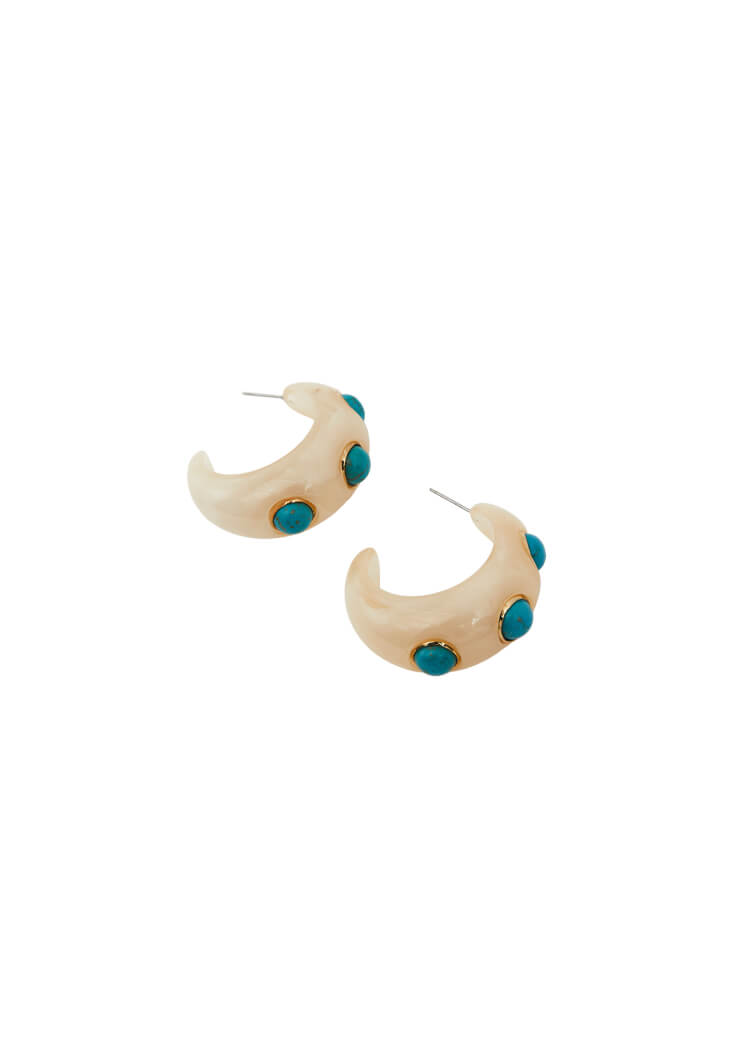 Krem Taş Detaylı Küpe