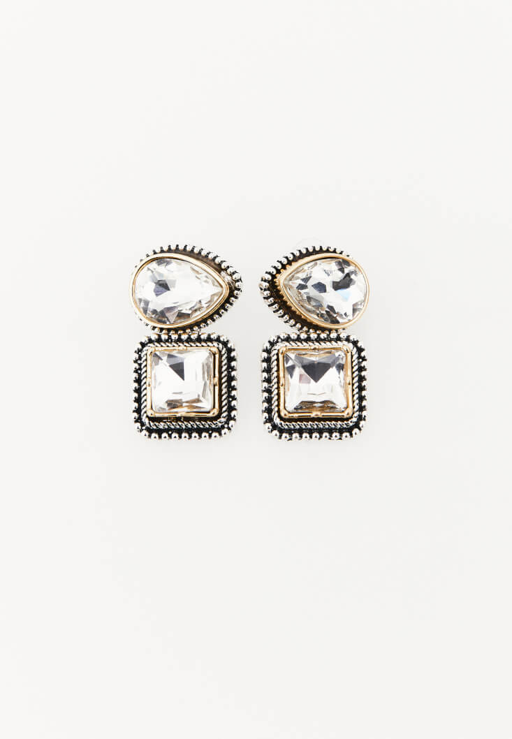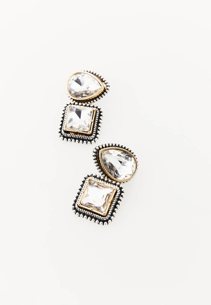 • Bayan Çok Renkli Taş Detaylı Küpe