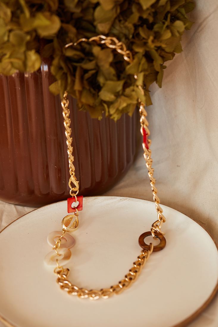 Tasarım Zincir Kolye modeli, altın rengi kalın zincirleri ile göz alıcı bir görünüm sergiliyor. kadın kolye modeli, geometrik şekillerden oluşan boncuk detaylarıyla dikkat çekici bir aksesuar olarak karşınıza çıkıyor. Farklı renklerle bir araya gelen ayrıntıların hoş uyumunu net bir şekilde görebileceğiniz zincir kolye modeli ile stilinize eşsiz ışıltılar katabilirsiniz. kadın kolye modeli ile sallantılı küpe modelleri kullanarak benzersiz aksesuar şıklığı elde edebilirsiniz. Yeni sezonda da ön plana çıkan uzun elbise ya da dantelli bluz modelleri tercih edeceğiniz kombinlere kadın kolye modelini rahatlıkla ekleyebilirsiniz. Oxxo'nun dikkat çeken detaylarla sunduğu kadın kolye modelleri ile sezonun öne çıkan parçalarından oluşan hoş görünümler yakalayabilirsiniz.