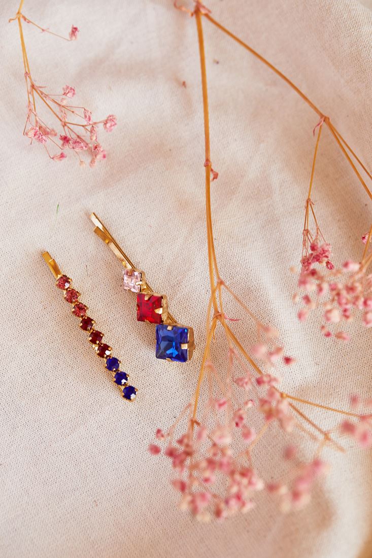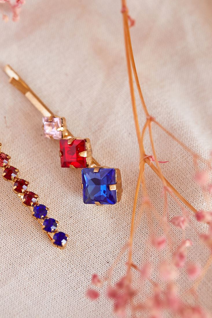 • Bayan Çok Renkli Taşlı 2'li Toka Seti