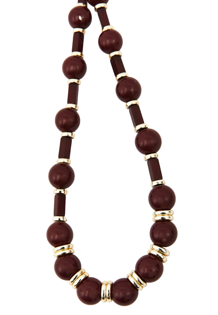 • Bayan Bordo Taşlı Kolye