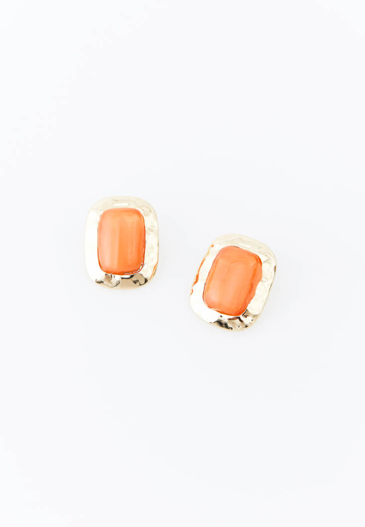 • Bayan Turuncu Taşlı Küpe