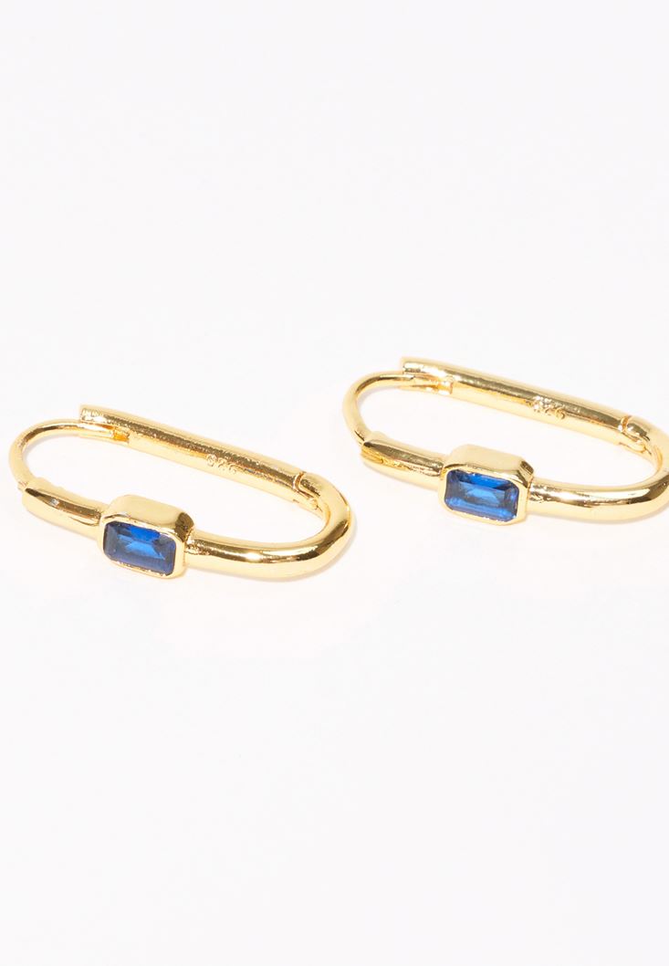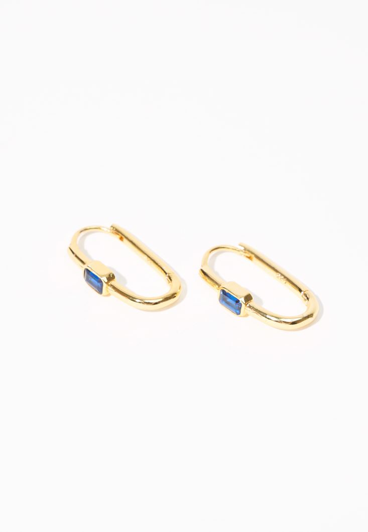 Lacivert Taşlı Oval Küpe