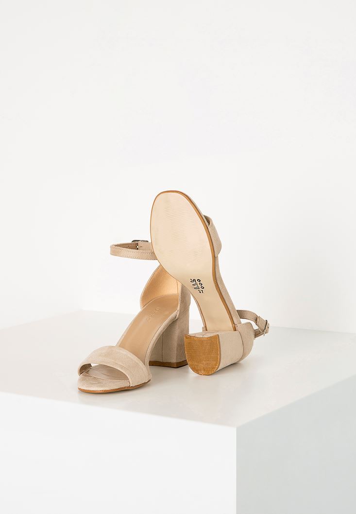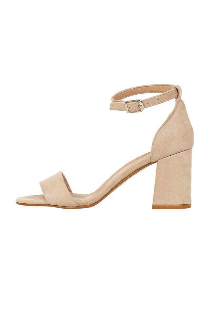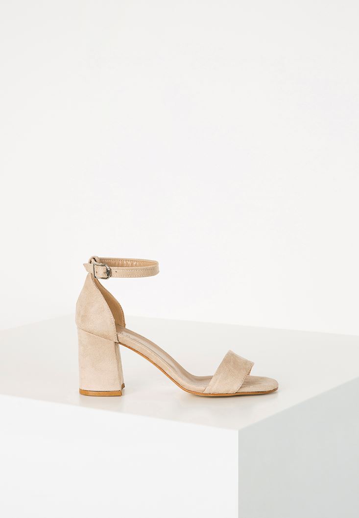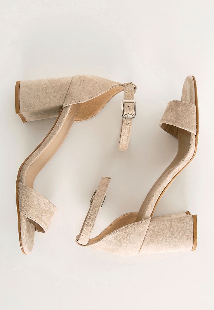 • Bayan Ekru Tek Bantlı Topuklu Ayakkabı