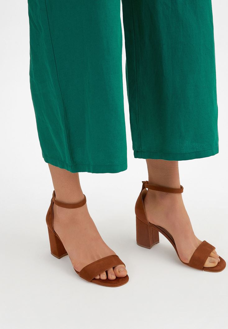 Kahverengi Tek Bantlı Topuklu Ayakkabı