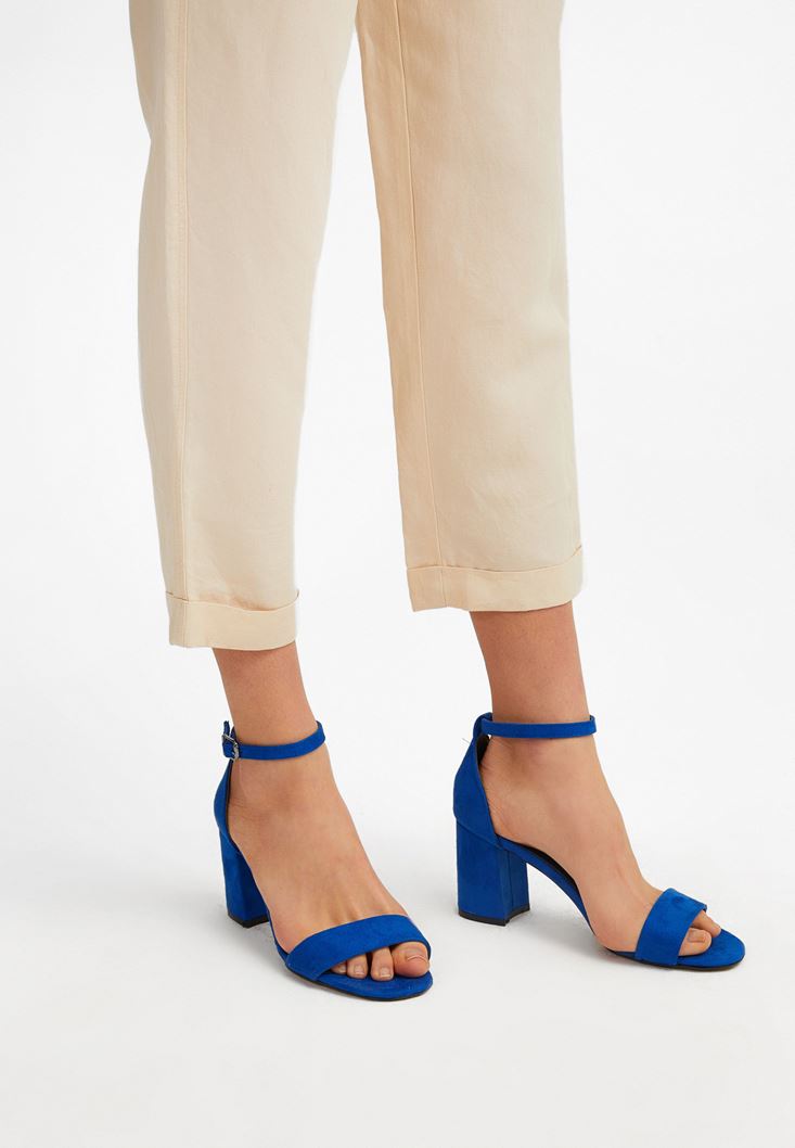 Mavi Tek Bantlı Topuklu Ayakkabı