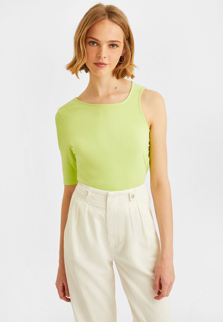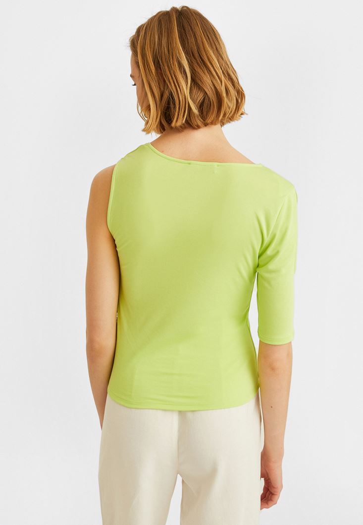 • Bayan Yeşil Tek Kollu Büzgülü Bluz