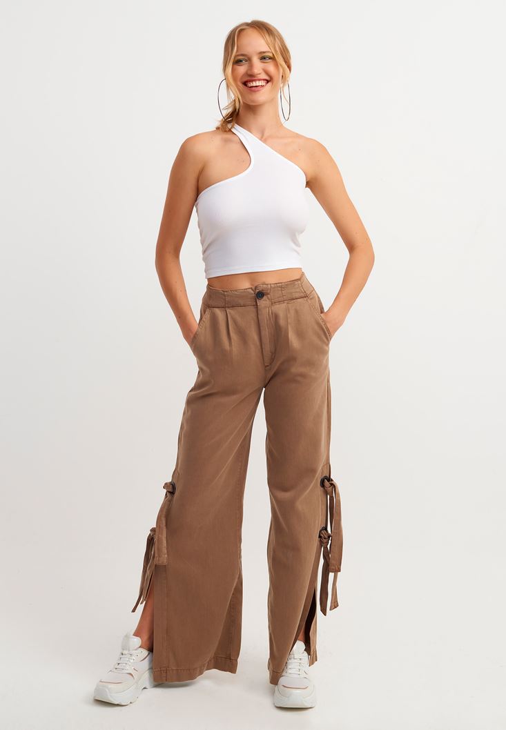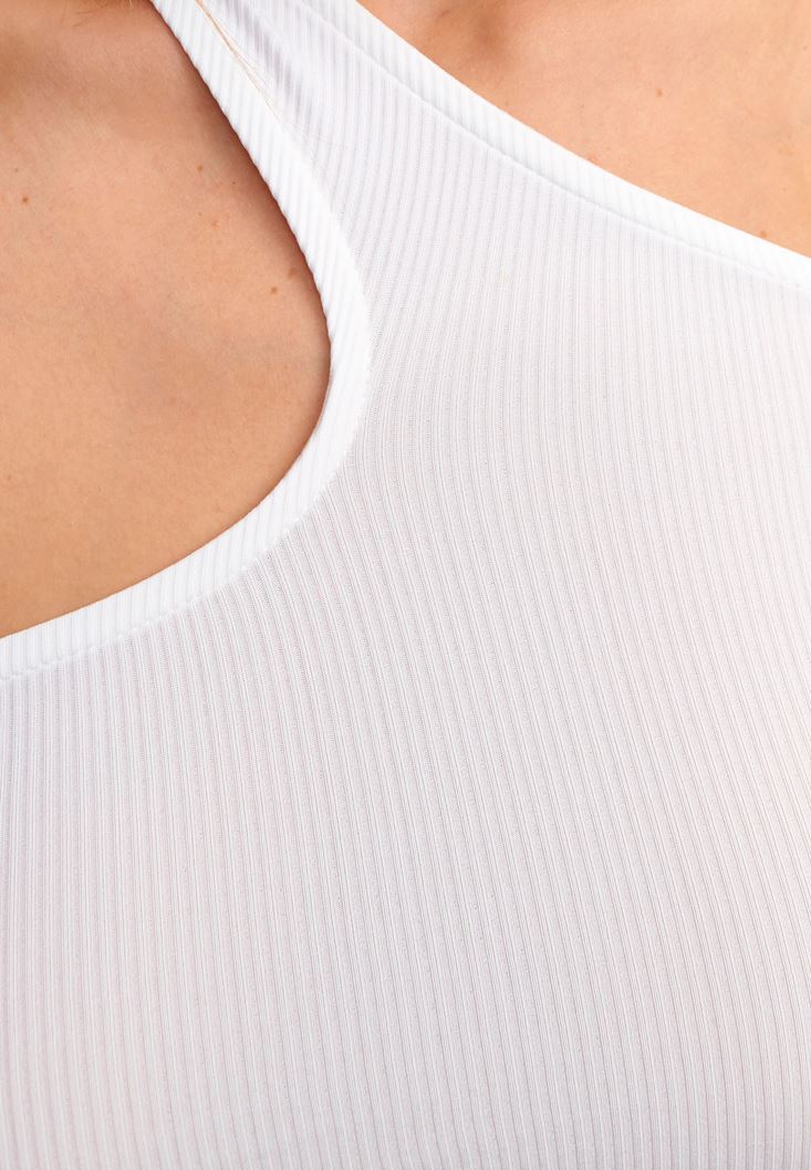 Fitilli özel esnek doku, crop kesim, asimetrik tek omuz detaylı, bedeni saran rahat kalıp, kalın askılı.