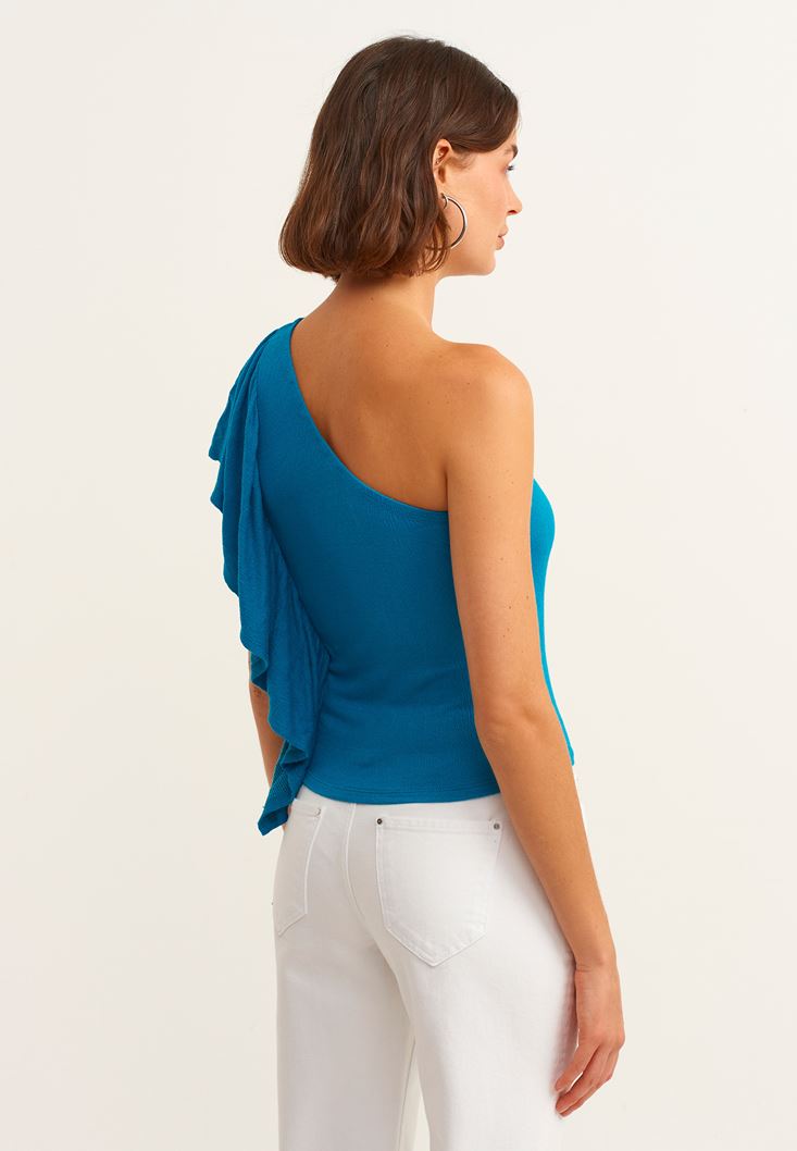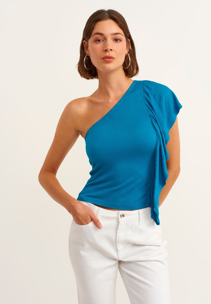 Mavi Tek Omuz Fırfır Detaylı Bluz